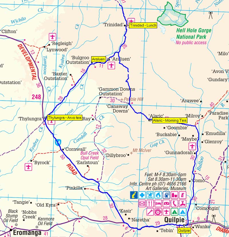 Tomorrow we are going Opal fossicking at "Deuces Wild" a claim about 60kms from Quilpie. Wish us luck.