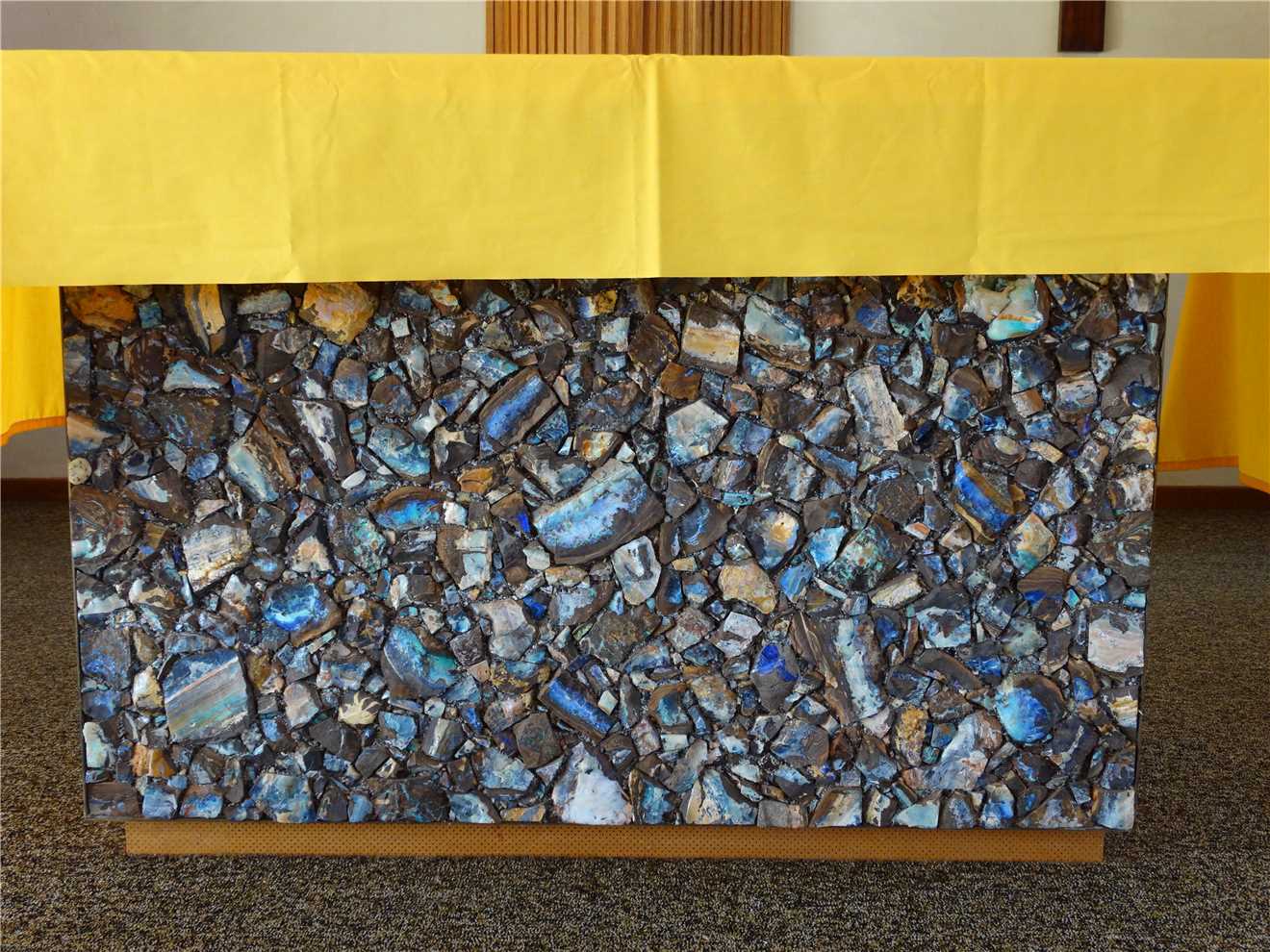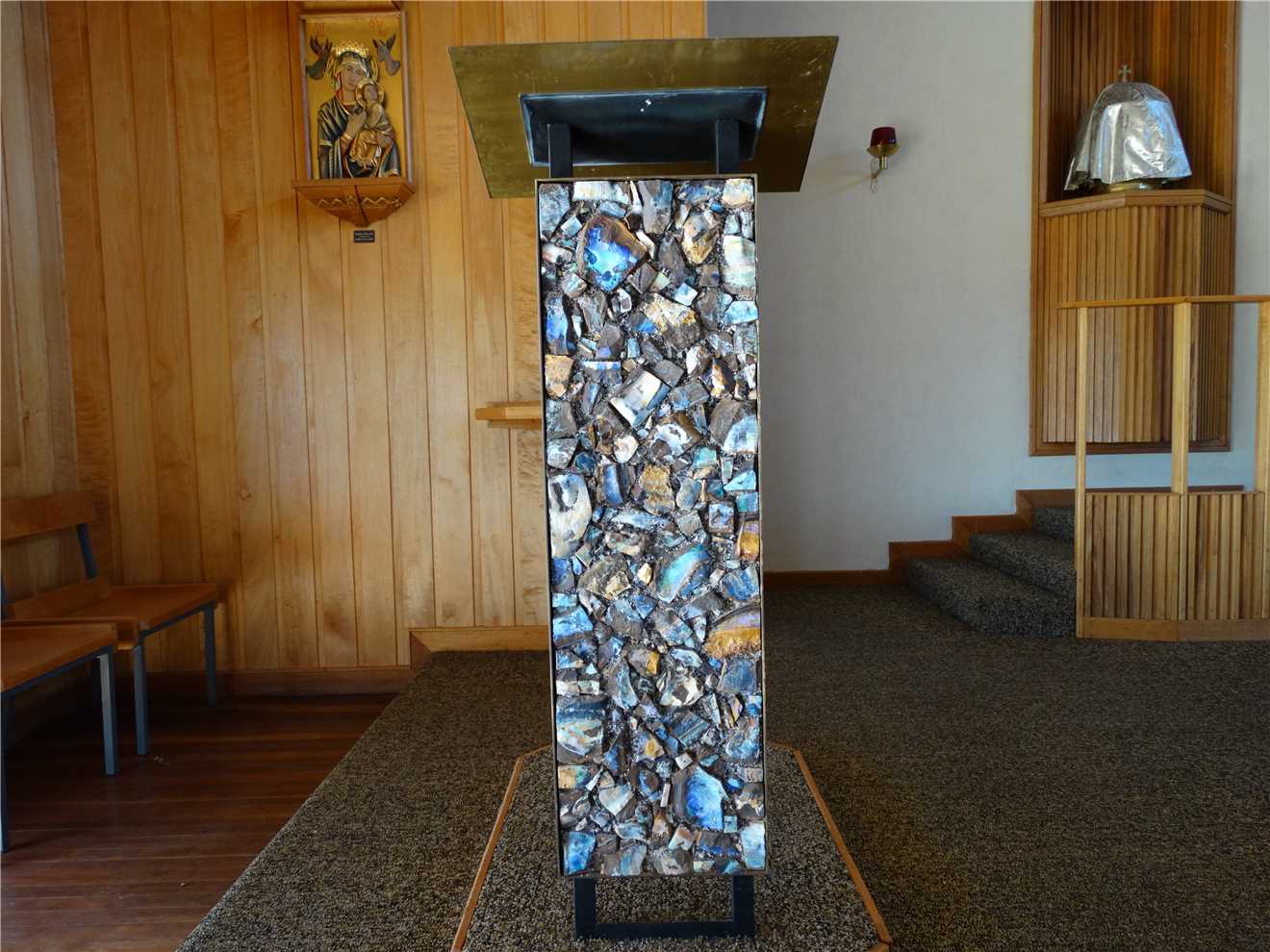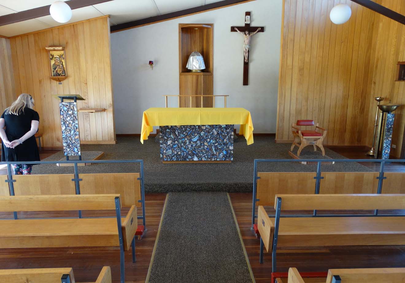 After lunch, we visited the Info centre, St Finbar's Catholic church and took pictures of the opal encrusted altar, font and lectern, then filled up with diesel,