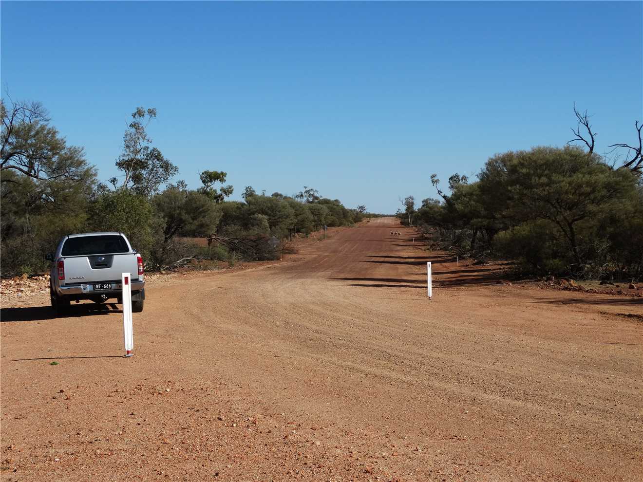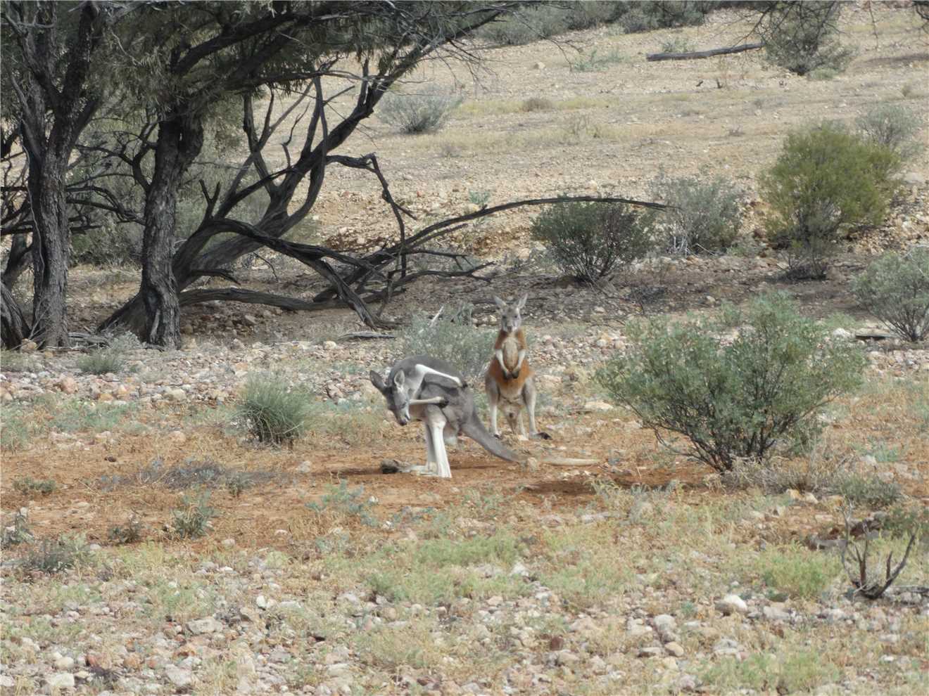 medium size roos jumped across the road in front of us, I braked and the first one crossed us BUT the second one stopped and we missed it. The most exciting