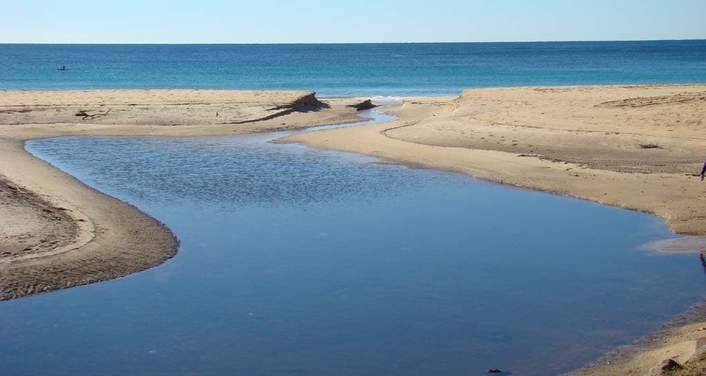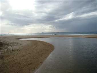 After yesterday's quick rain squall, the 'channel' was carved through the sandbank.