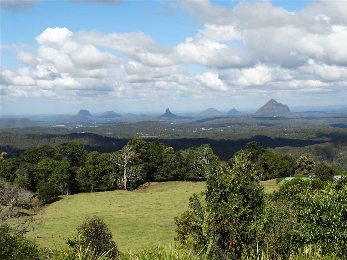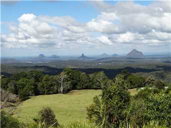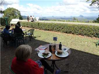The magnificent view of the Glasshouse Mountains from Mary Cairncross Cafe.