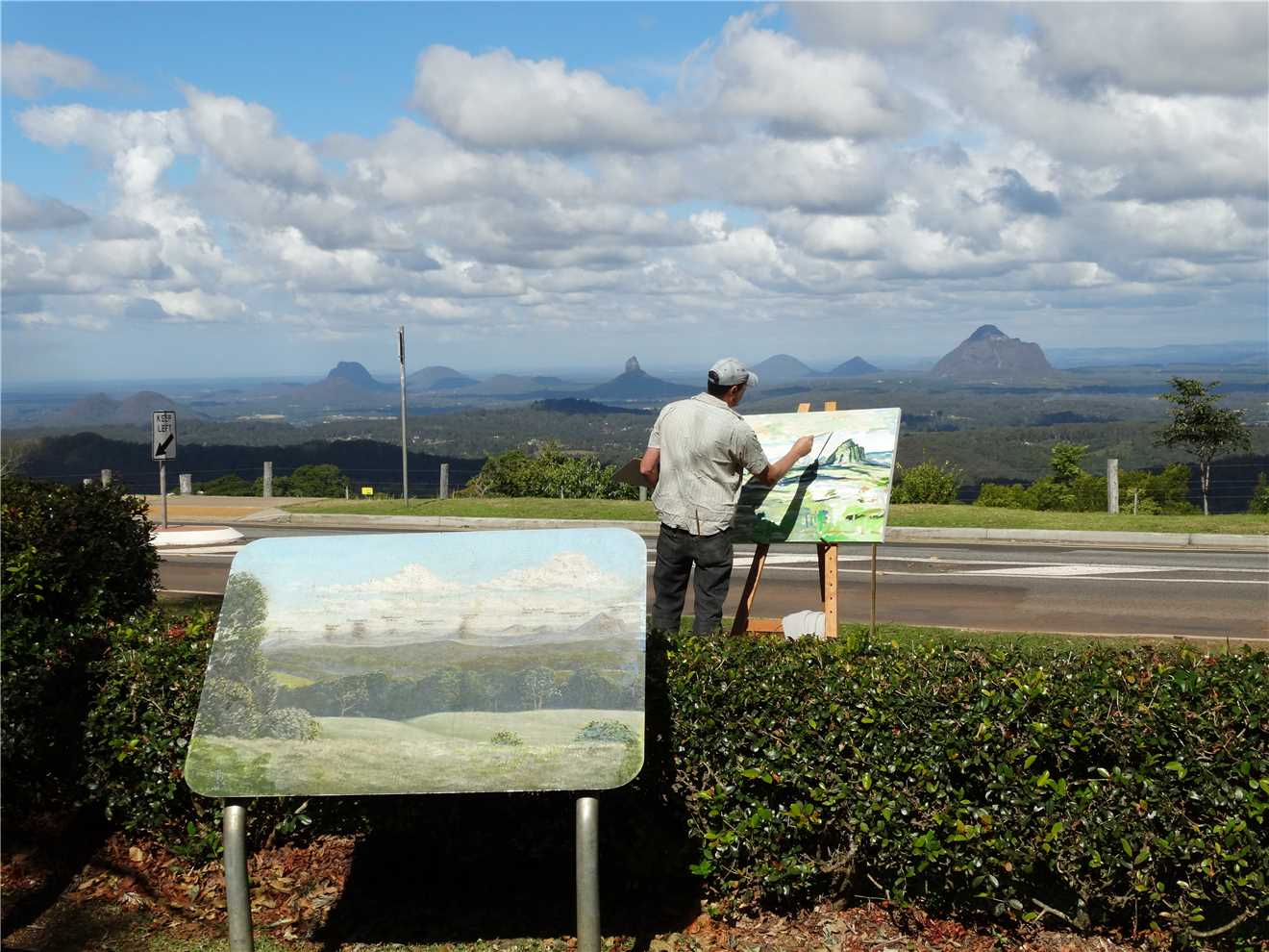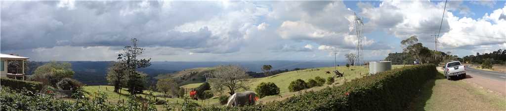 Mary Cairncross cafe for lunch, arriving there at 11:36am. I took a few photos of the view, it was cloudy and a bit hazy, BUT still beautiful. We had a table which gave us an uninterrupted view, except for some artist who was painting the view. Lunch was YUMMA, Marg had a steak sanga, while I had a burger. Our next stop was the fudge shop in Maleny (Sweet on Maple), we left there $44 lighter and the fudge is very yumma. From there, we stopped and had a coffee and bought some cheese at Maleny Cheese. As the clouds were gathering, we decided to cut short our drive and give Montville and Nambour a miss.