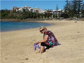 After Bingo, we stayed at the club and had lunch, Bob joined us and it was a pleasant lunch, Marg had rice balls, I had the Dicky Beach special chicken parma. They were YUMMA. Back at camp, I then went riding, usual route. The highlight was seeing the 'Birdman of Point Cartwright'. My riding details: Today 33kms, Dicky