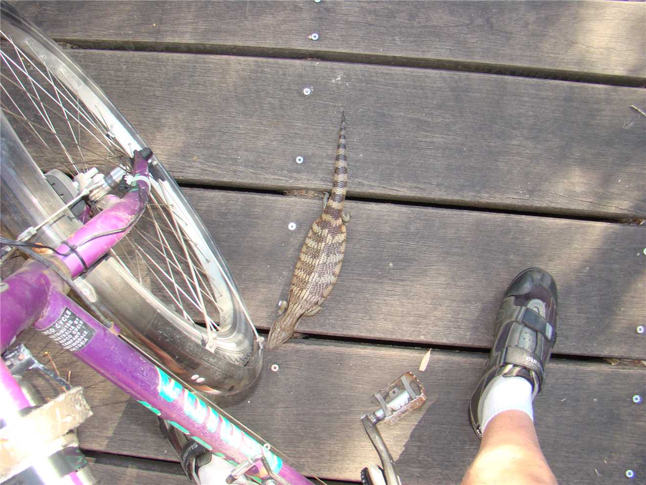 the second was the blue tongue lizard that was dying to have its photo taken. My riding details: Today 33kms, Dicky Beach total for 18 rides: 597kms.