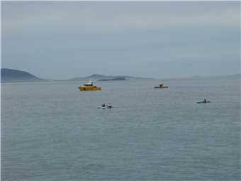 It was an overcast day with bugger all wind, my ride was great as usual. The highlight was watching the large Coast Guard boat tow its 'little brother'