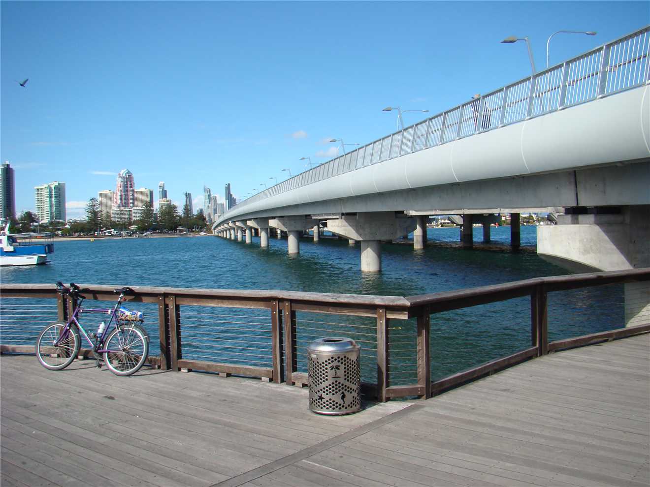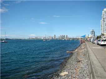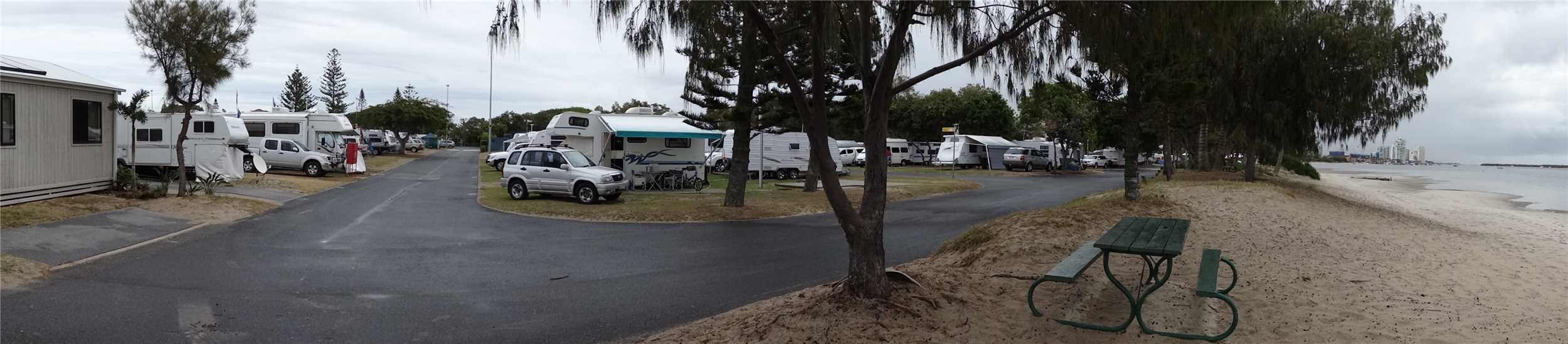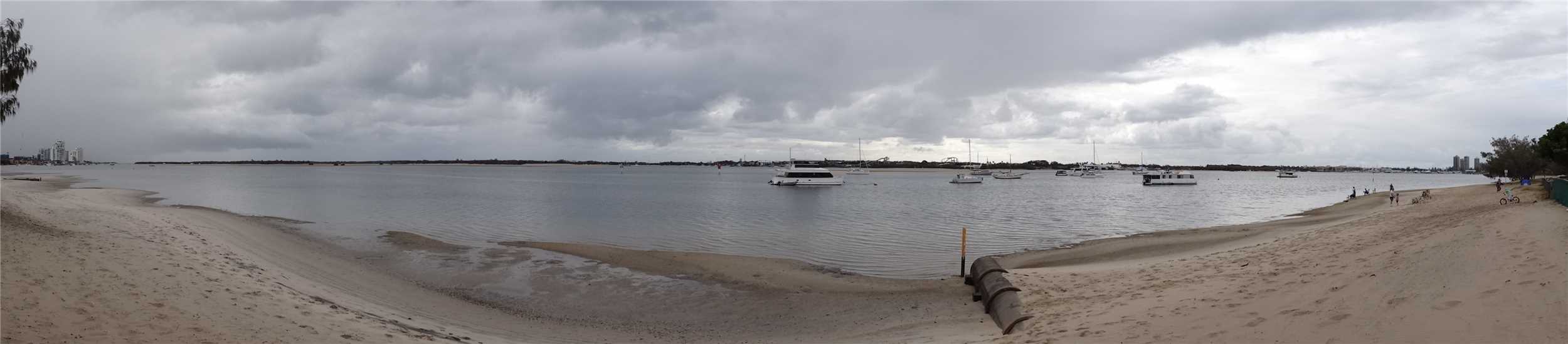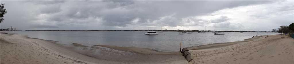 We slept well and woke about 6:15am, and I got up and put a load of washing. Marg stayed in bed and watched Sunrise, then I went riding. Identical to yesterday, I headed off to Surfers first, as the Southerly was gusting over 40kph. After struggling to Surfers, I had a beautiful tailwind, the whole way to The Spit. I stayed there for a couple of minutes, and ate my bananas. Went past Cafe Rockpool with another beautiful tailwind to Lands End before turning around and heading to Nerang river and then stopped at Cafe Rockpool for a coffee before heading back to camp.