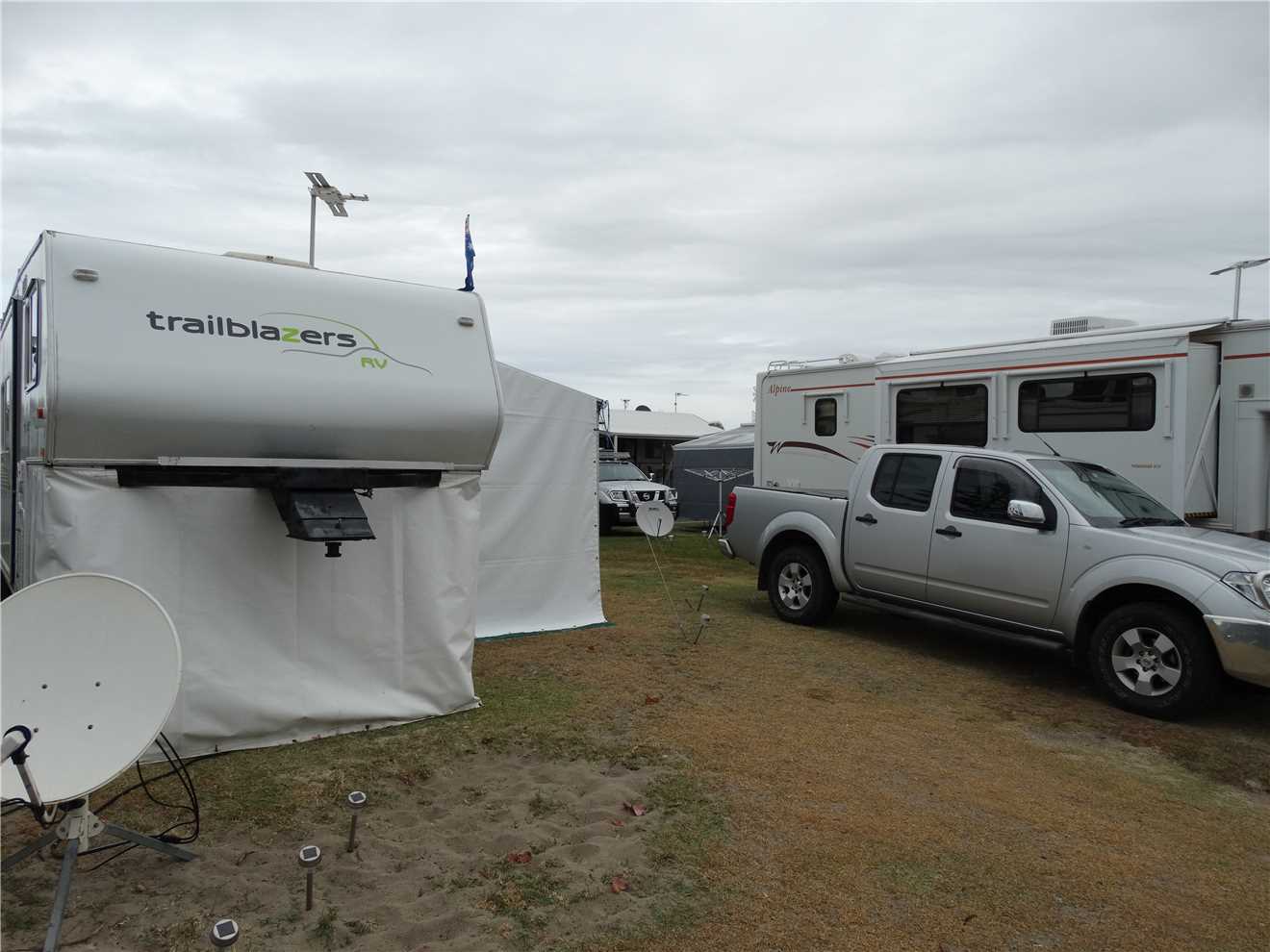 new neighbours behind us just happen to be David and Di, our Trailblazers RV twin. later in the arvo, we had a happy hour in their fiver.