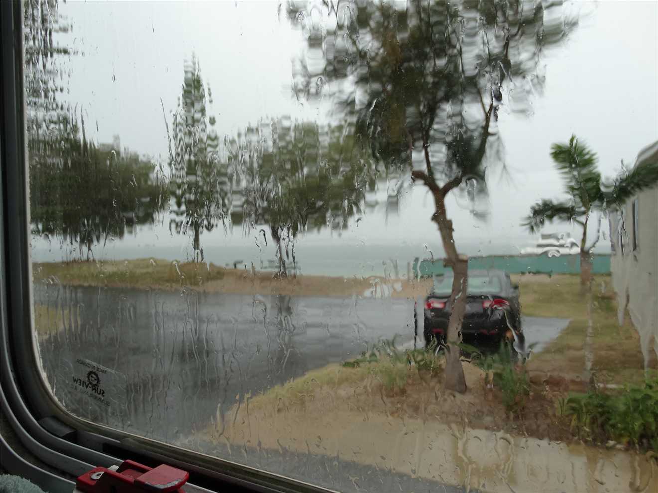 We slept well and woke about 7:15am and laid in bed watching Weekend Sunrise. It rained overnight and the forecast was for 20-40mm, (Update: as at 7:00am Sunday we have had 85.6mm)so we decided to spend the day at camp. We eventually got up, had brekky and buggered about outside in between the rain squalls. We spent most of today, sitting in the fiver watching various TV shows (Amazing Race Aus-NZ, Highway Patrol, The Force, TMZ etc) that I have recorded during the week from the VAST system. We even managed a nanna nap during the arvo, it was great laying on the bed, covered by a blanket listening to the rain on the roof and watching it through the window.