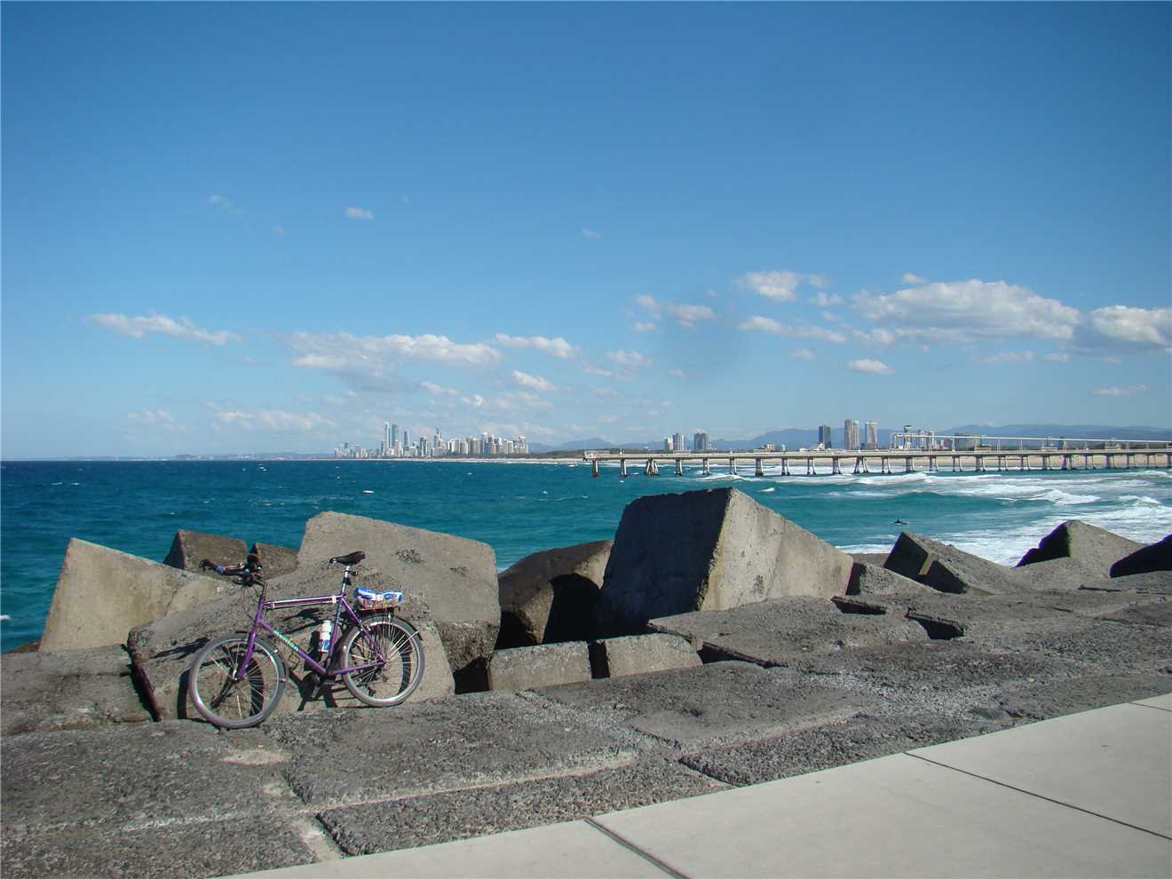 I had a very good sleep, I awoke at 4:30am and then at 7:15am. Marg stayed in bed and watched Sunrise, while I went riding. I headed off to Surfers first, as