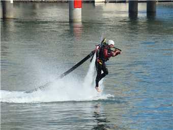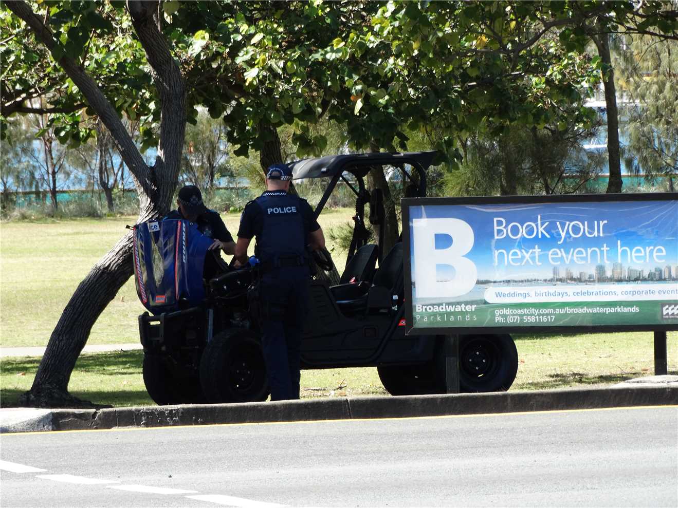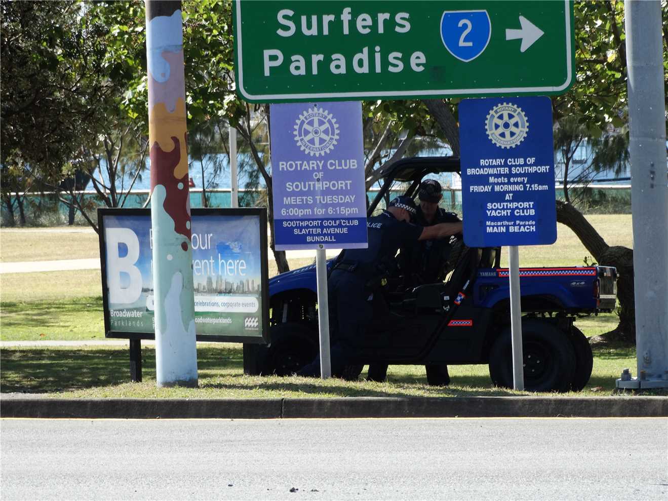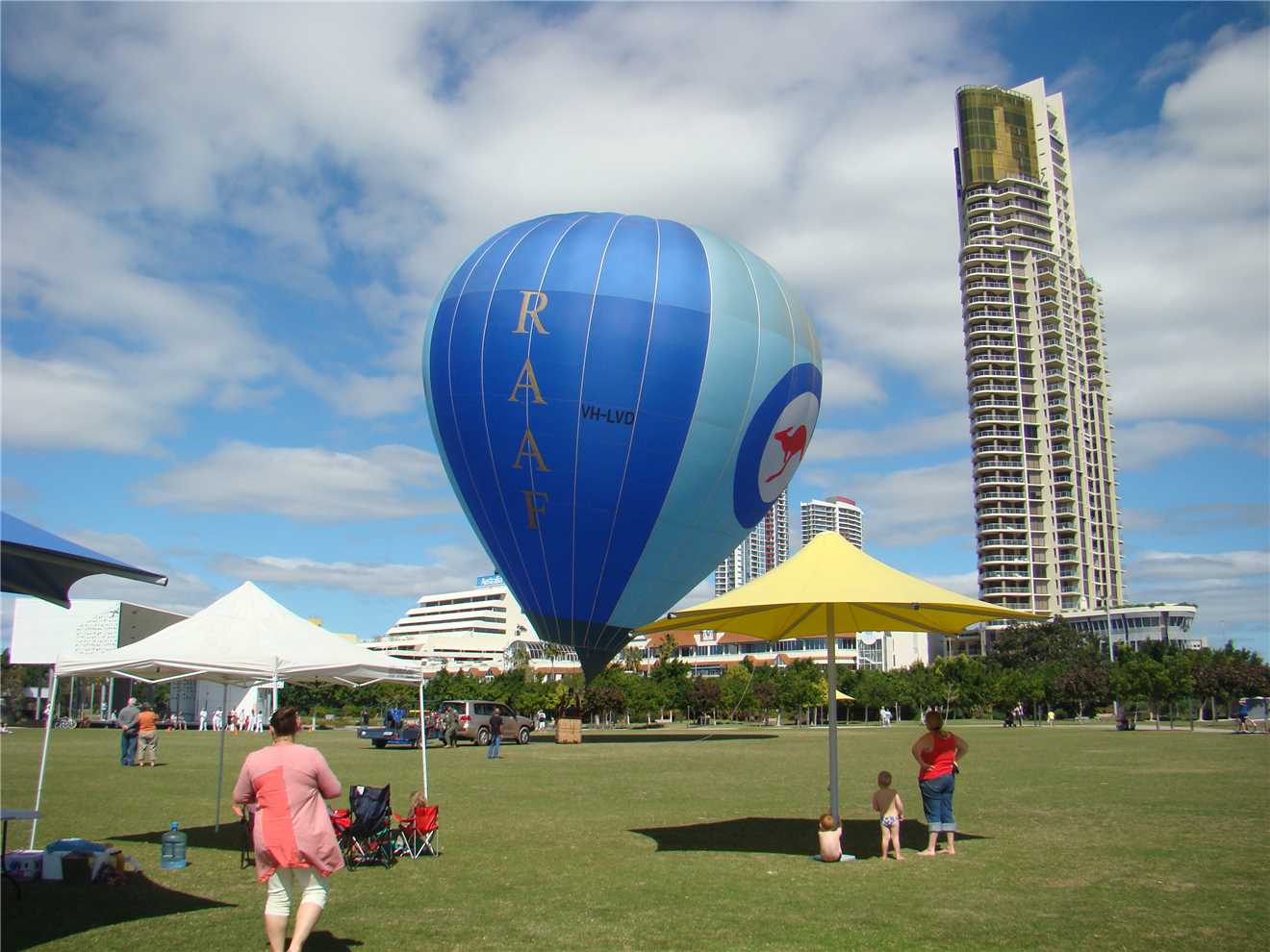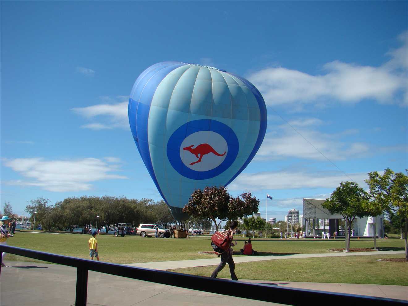 Today's riding highlight was meeting Trevor. I didn't realise as I past Trevor that he had fallen off his bike, 2 ladies criss crossed in front of him and his front wheel caught the edge of the footpath and down he went. I stopped to watch the Jeetman again and Trevor rode past me. I caught and spoke to him as we were ridding over the new Nerang River shared path. We chatted the whole way to cafe Rockpool and Trevor offered to buy me a coffee, as we sat and talked about bikes and everything else. Trevor has just started riding again after many years. I had a very enjoyable time with Trevor and hope that our paths cross again before I leave the Gold Coast. While having our coffee there were 6 Air Force personnel having acoffee, the next thing they were inflating their balloon.