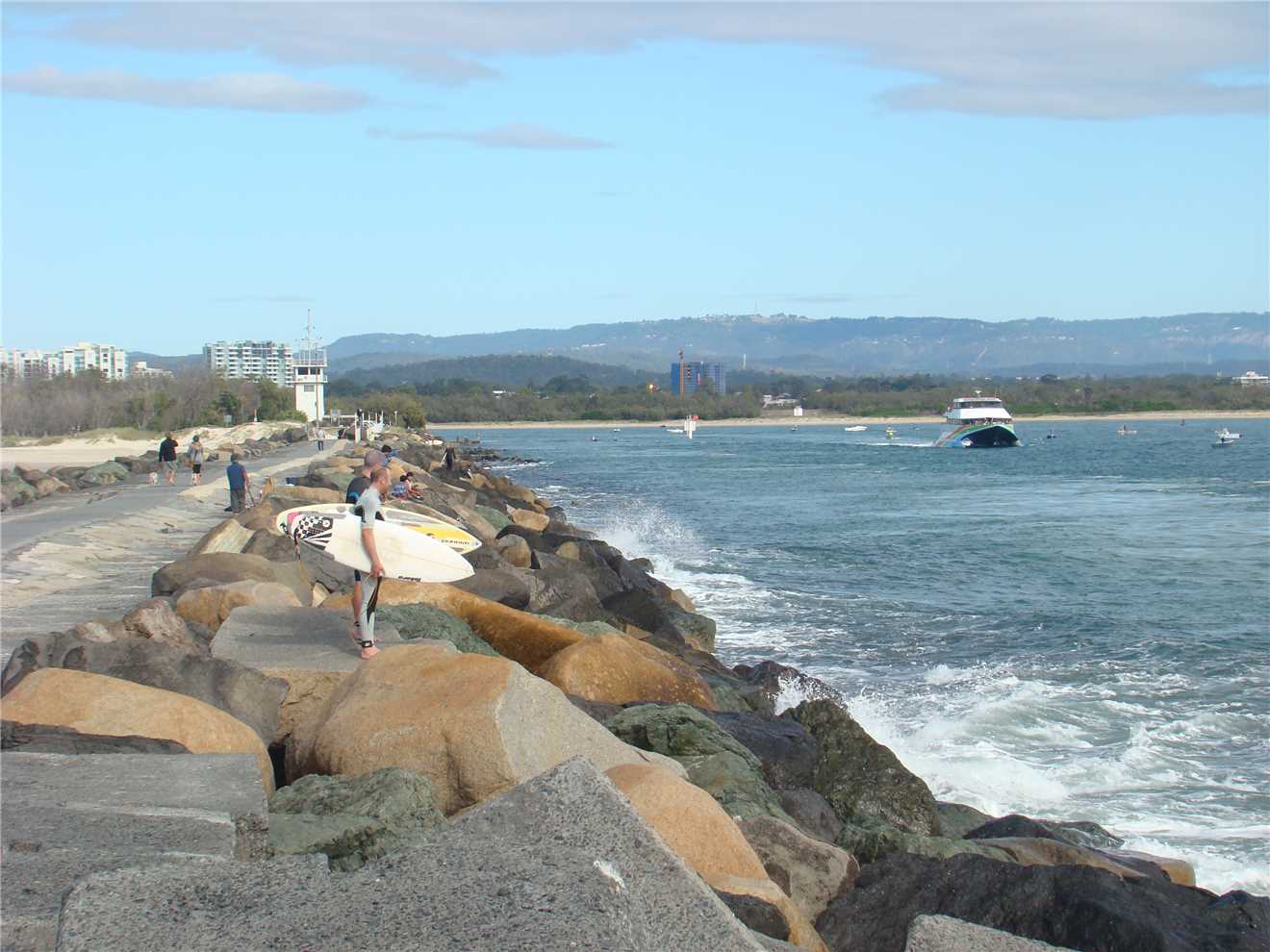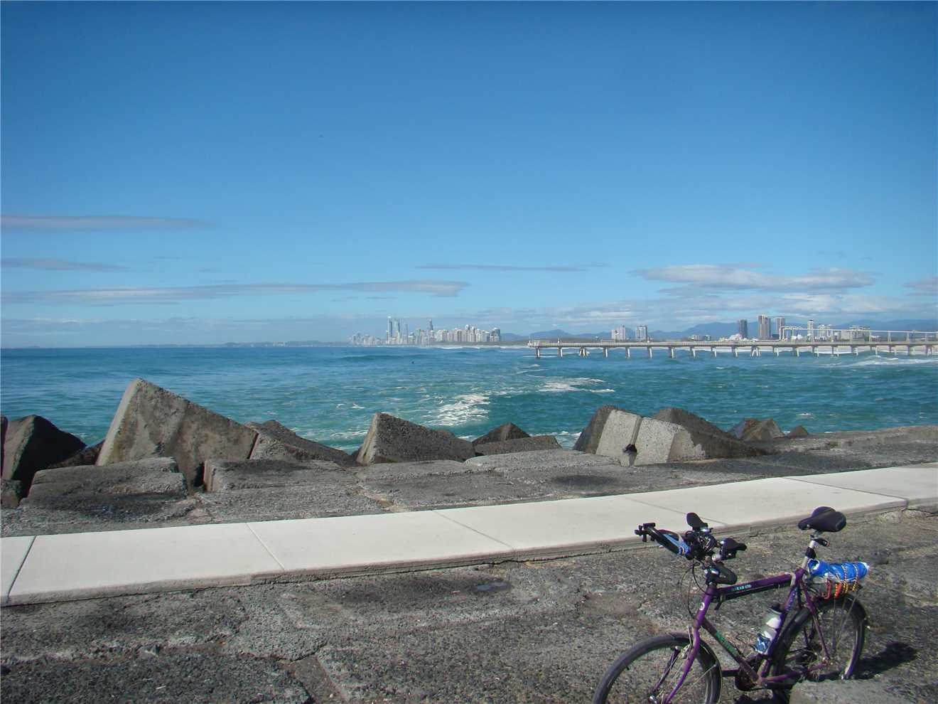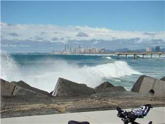 Anyway back to today, I left camp about 8:15am and headed off on my normal route, down to Surfers, out to the end of the Spit, coffee at Cafe Rockpool, upto Lands End, back to the Nerang River bridge and then back to camp, a total of 40.2kms. My Gold Coast riding summary is: - today's ride 40kms - Total to date: after my 18th ride is 666kms.