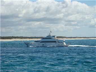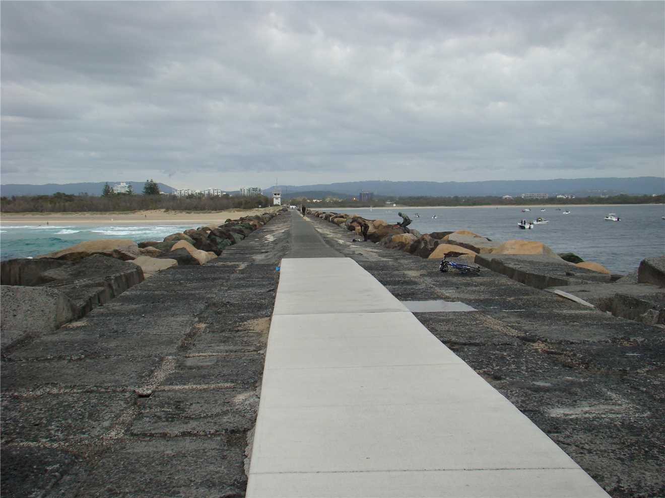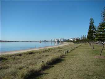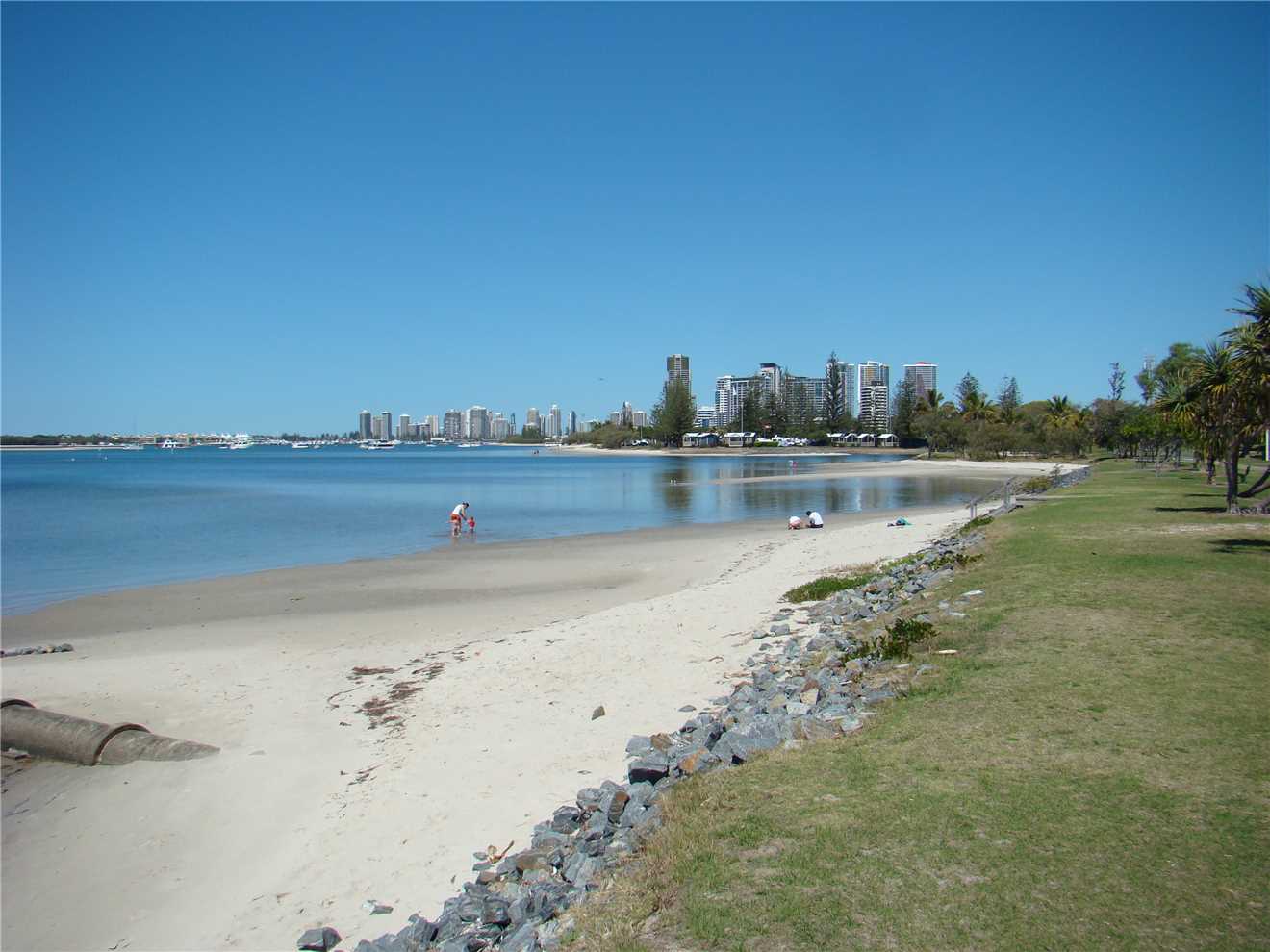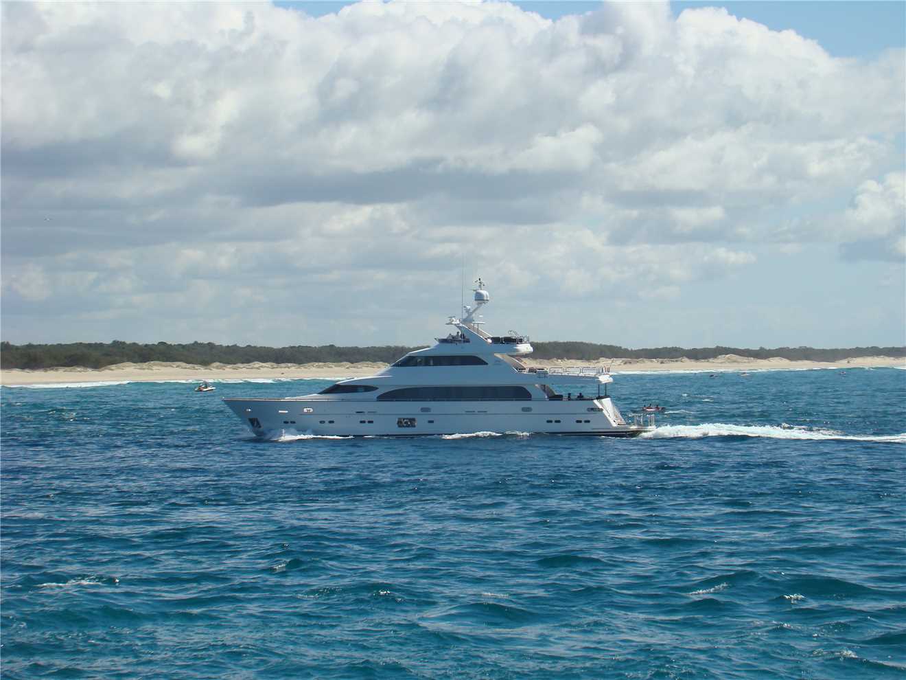 I slept very well until 6:30am, then listened to Macca until 7:00am when I got up and had brekky, while Marg slept like a log. I was meeting Crusty and Annie at 9:15am for a ride to The Spit and back to Labrador for coffee. I changed into cycleman and left camp at 8:00am and rode to Surfers and then back to Lands End before meeting Crusty and Annie in Labrador. We met as planned and rode along the shared paths to The Spit where we gazed out over the ocean and watched a very nice BIG boat power through the seaway into the Broadwater. It was another magic day in Paradise. We headed back along the gravel Federation Walk and back along the shared path to