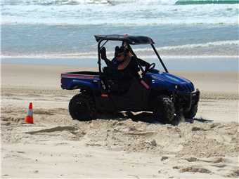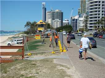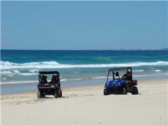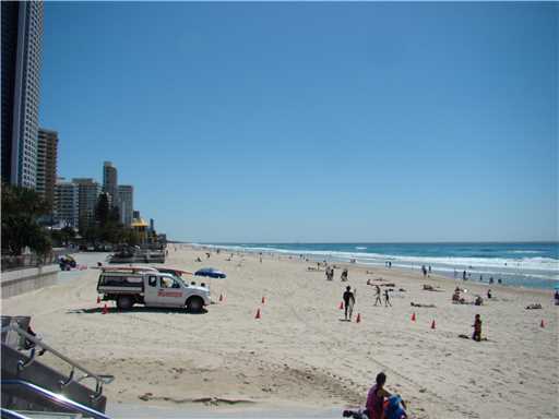 Riding on the ocean side of Sheraton Mirage resort, I spotted a Police Quad on the beach, upon further investigation, there were some new recruits being trained in driving Quads along the beach. They had witches hats to zig zag around and when I left they had bogged a Quad and the trainer was about to tell them what to do when I continued on my ride.