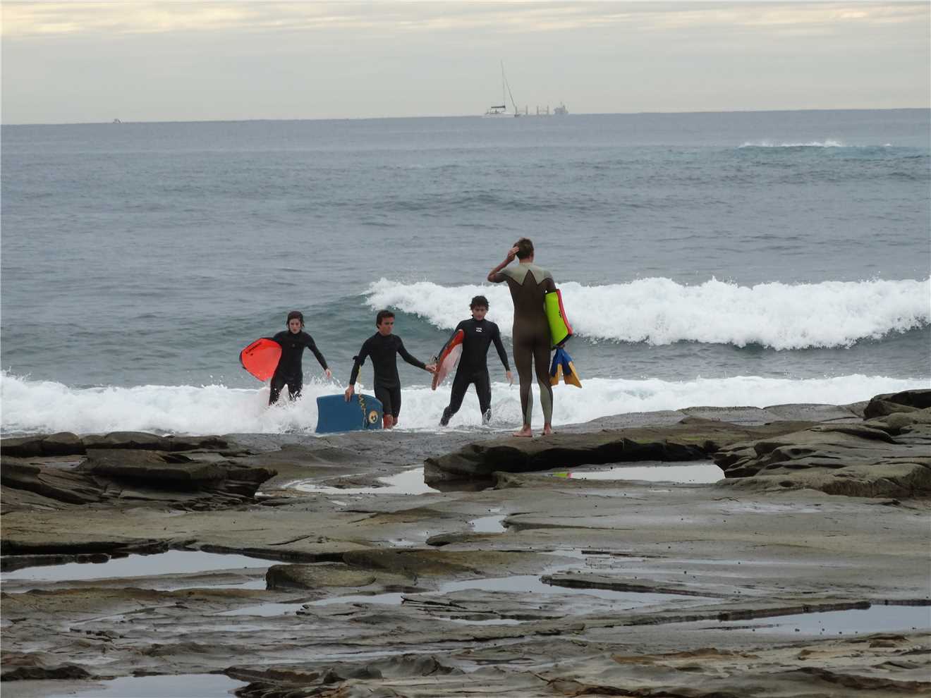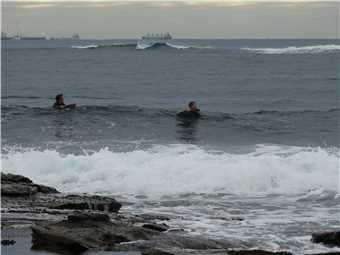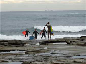 The surfers off the rocks at Dicky this morning.