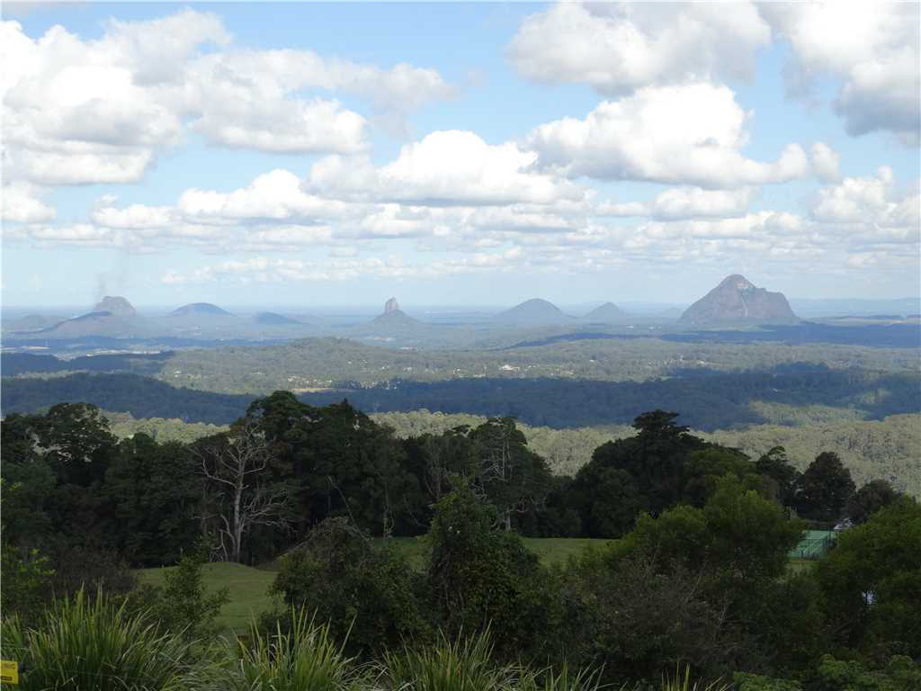 The Glasshouse Mountains taken opposite Mary Cairncross Cafe.