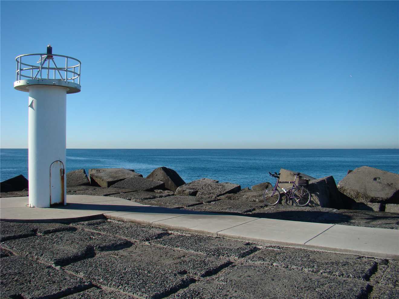 Today's weather photo at the Lighthouse at 12:47pm. Yacht on the left.