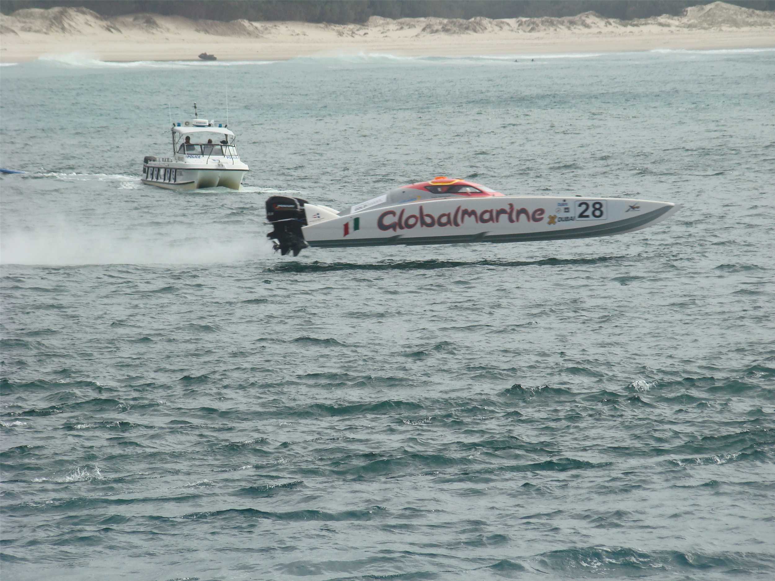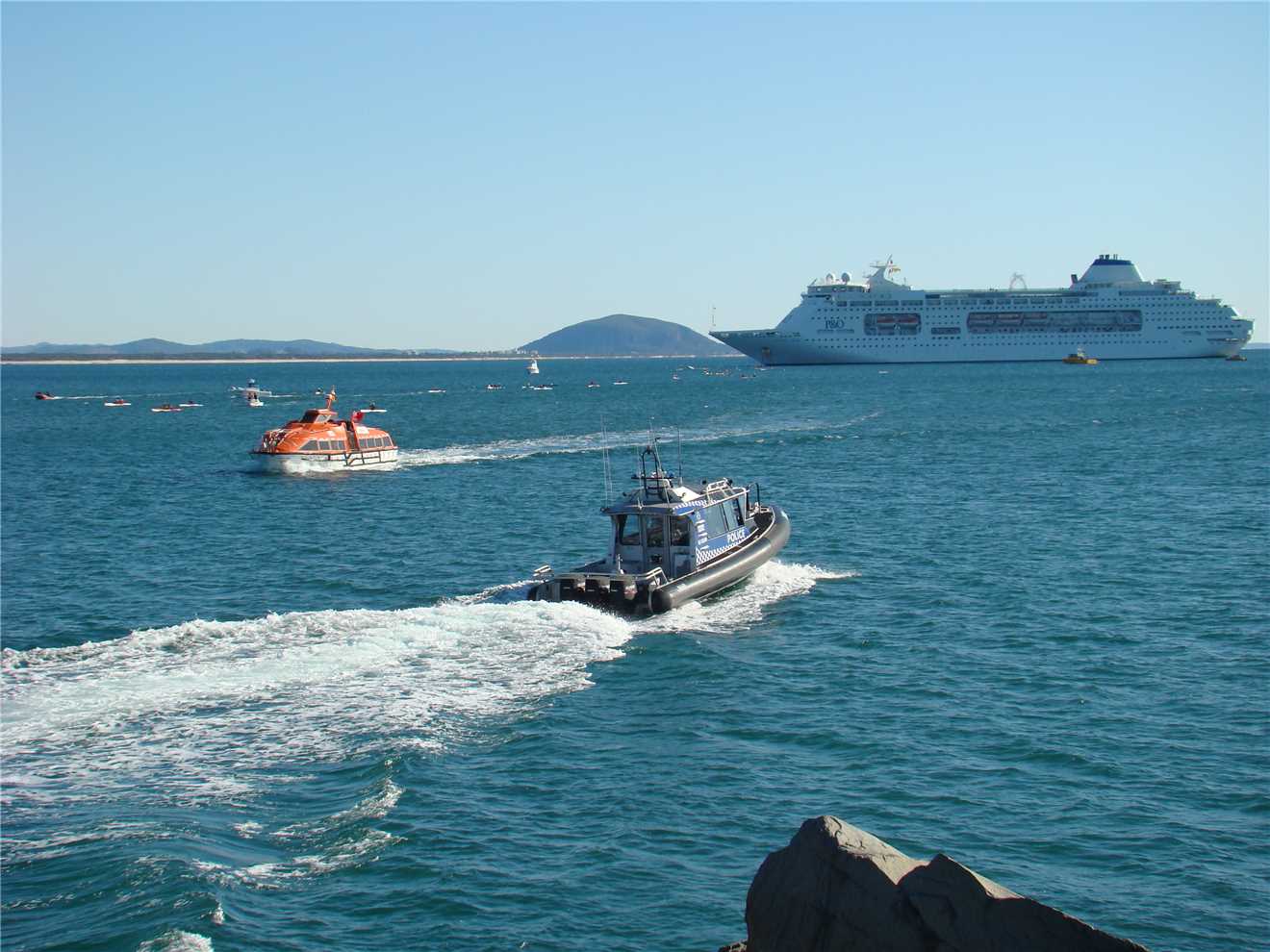 The Cop boat going for a 'stickybeak'.