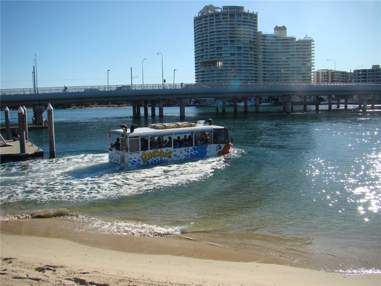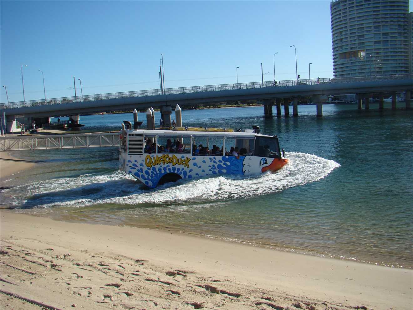 QuackaDuck entering the water.