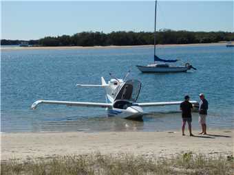 Home made seaplane landed near the bike path at Labrador.