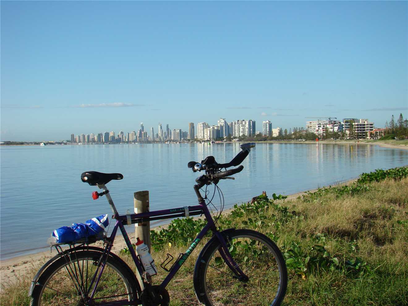 I pushed into a lighter headwind the whole way to Burleigh Heads. My Trusted Treadley has lately being shown signs of wear, it is over 25 years old. My chain had been jumping under pressure, which has become very annoying. While riding back from Burleigh Heads, the chain got jammed between the frame and front cogs. In the process of 'freeing it', I managed to bend a couple of the chain links. SO now my chain is jumping more than ever, I had to pedal slowly with very little pressure. While riding back to camp, I figured that with the chain, rear cogs, front cogs, rear derailleur and the hubs are worn out, all this would need to be replaced. With the cost of parts and labour, it will cost over $400, so I am now looking at buying a new 'Travelling' bike.