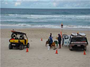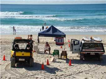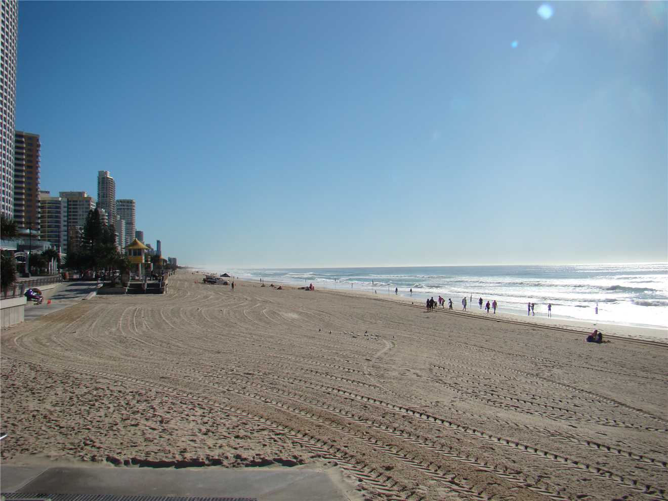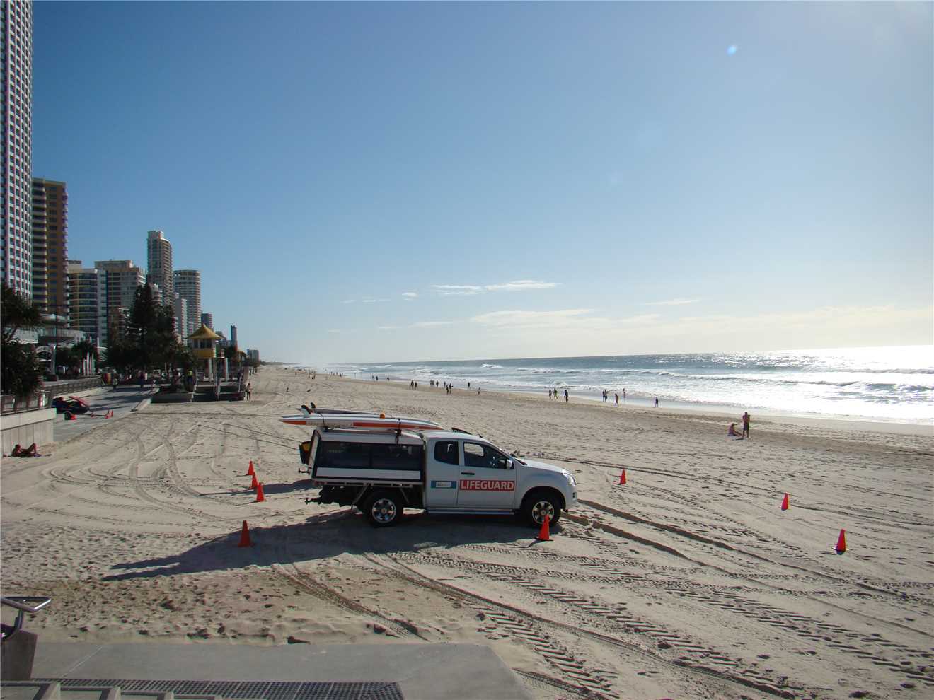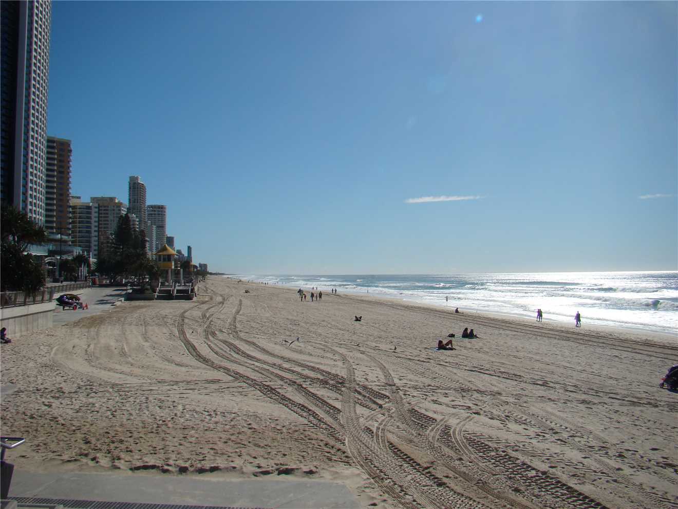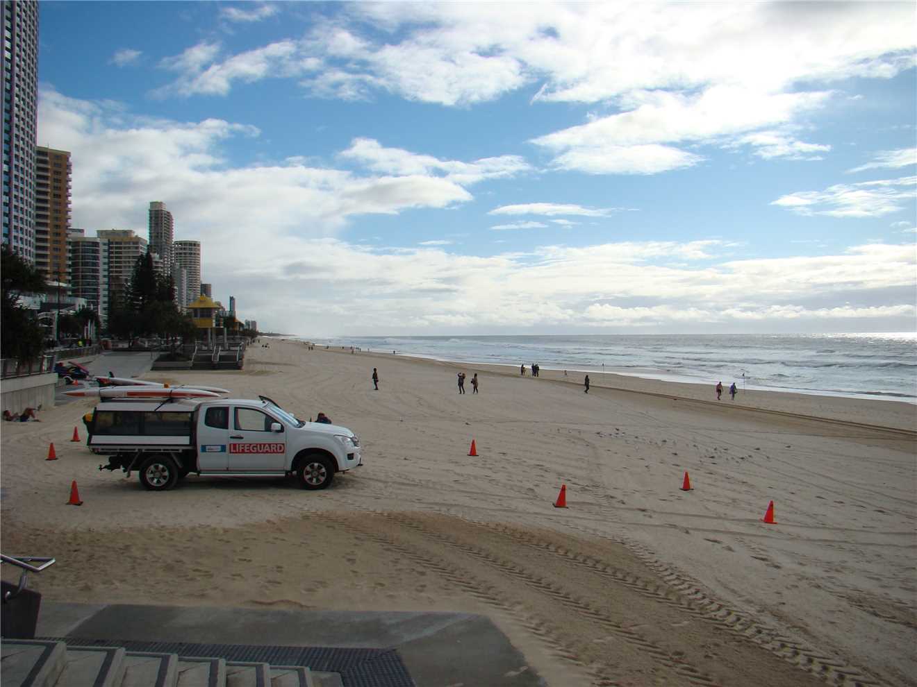 I rode to Burleigh Heads having a coffee at Robbie's cafe, rode back through Surfers stopping at the Spit where I ate my bananas and watched the surfer taxi, take surfers to South Straddy for $6 return trip. I stopped at the Pirates 5 movie set at the other end of the Spit and spoke to Costa (Gate keeper) for about 15 minutes, he wasn't too busy. Left Costa and headed to Lands End and then back to camp.