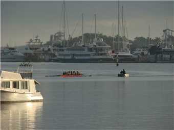 I headed north to my turnaround point at Lands End, being briefly stopped at Labrador, as there was a Fait car commercial being filmed. Continued into the nasty headwind, all the way to Burleigh Heads, got to Robbie's cafe about 2:20pm, they close at 2:30pm, so I kept going. Half way out on the seawall, George flew in to say "Hi", then stopped at Cafe Rockpool, where Sean made my coffee and warmed my muffin (purely in a manly way), then back to camp. The Gold Coast marathon is on Sunday 5th July, and the setting up has already started.