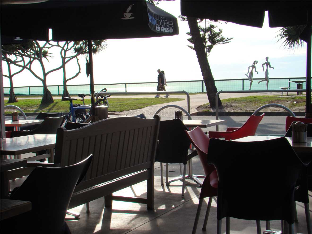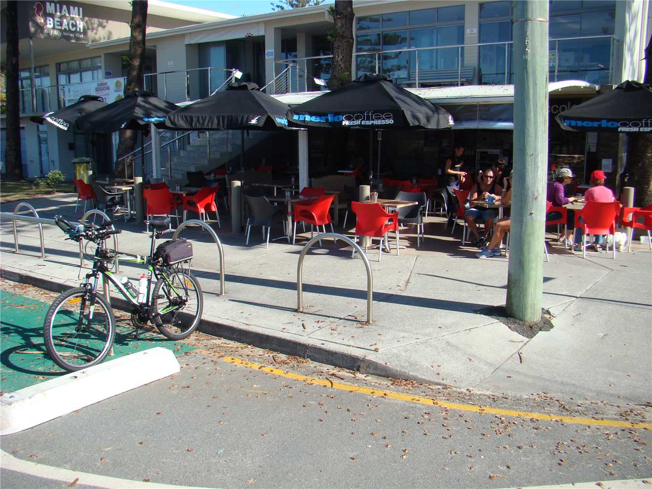 to Burleigh Heads, stopping for a coffee at Robbie's cafe. It is completely different to the weekend, there were about 15 people there, so plenty of tables. After coffee, I continued out to The Spit, then upto Lands End and back to camp.