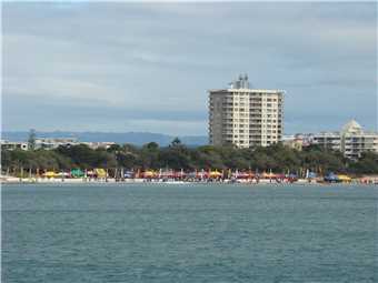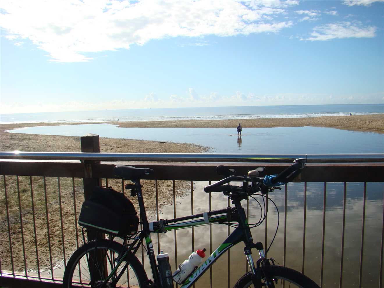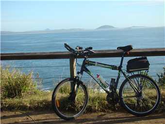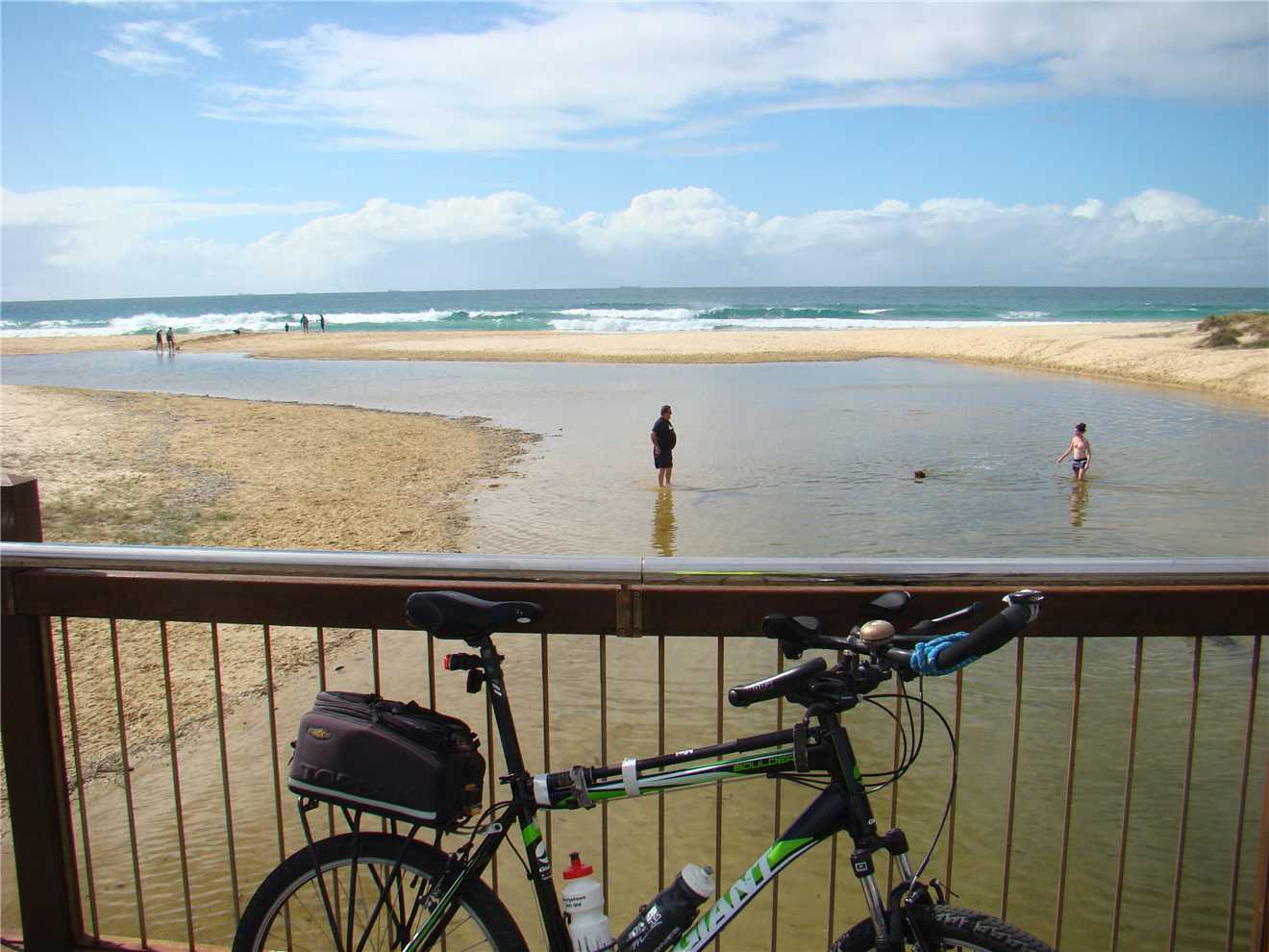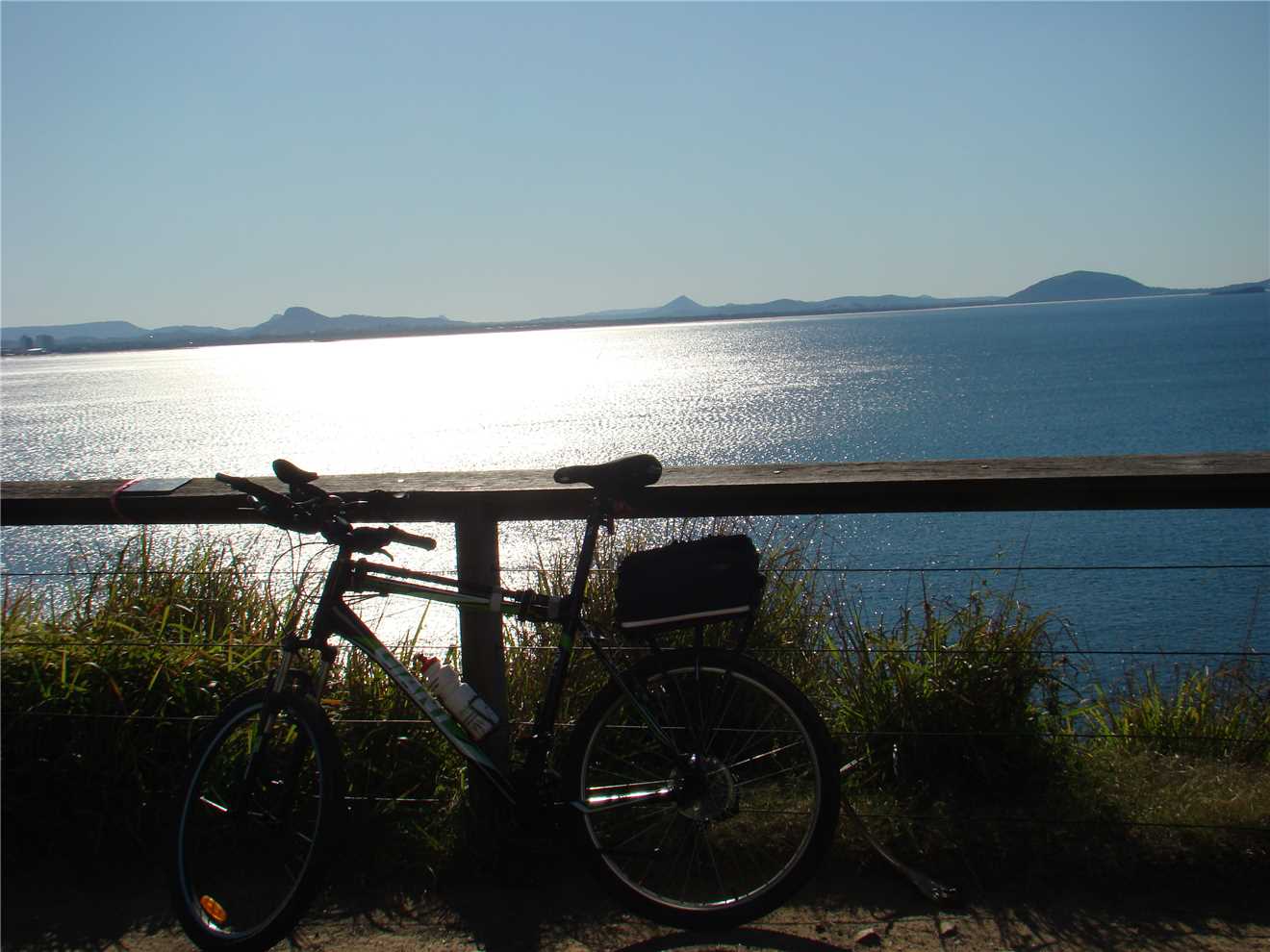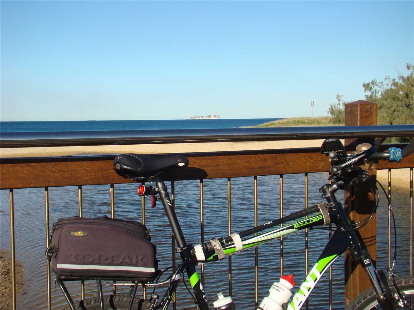 We woke up about 7:45am, YEP 7:45am, I slept in. We had brekky and about 8:25am, I changed into 'cycleman' and did my now normal route of approx 47kms. I headed off to Point Cartwright Lighthouse, where yesterday's cruise ship is no longer. Did a U turn in the lighthouse carpark, and rode back to Beach Drive about 7kms away into an awful Southerly headwind, before turning around again and heading back to the Lighthouse and then down the hill to the Spit, today I was the only human on the Spit, yesterday it was chockers. Then up the hill to the Lighthouse and then back to camp. A total of 46.5kms.