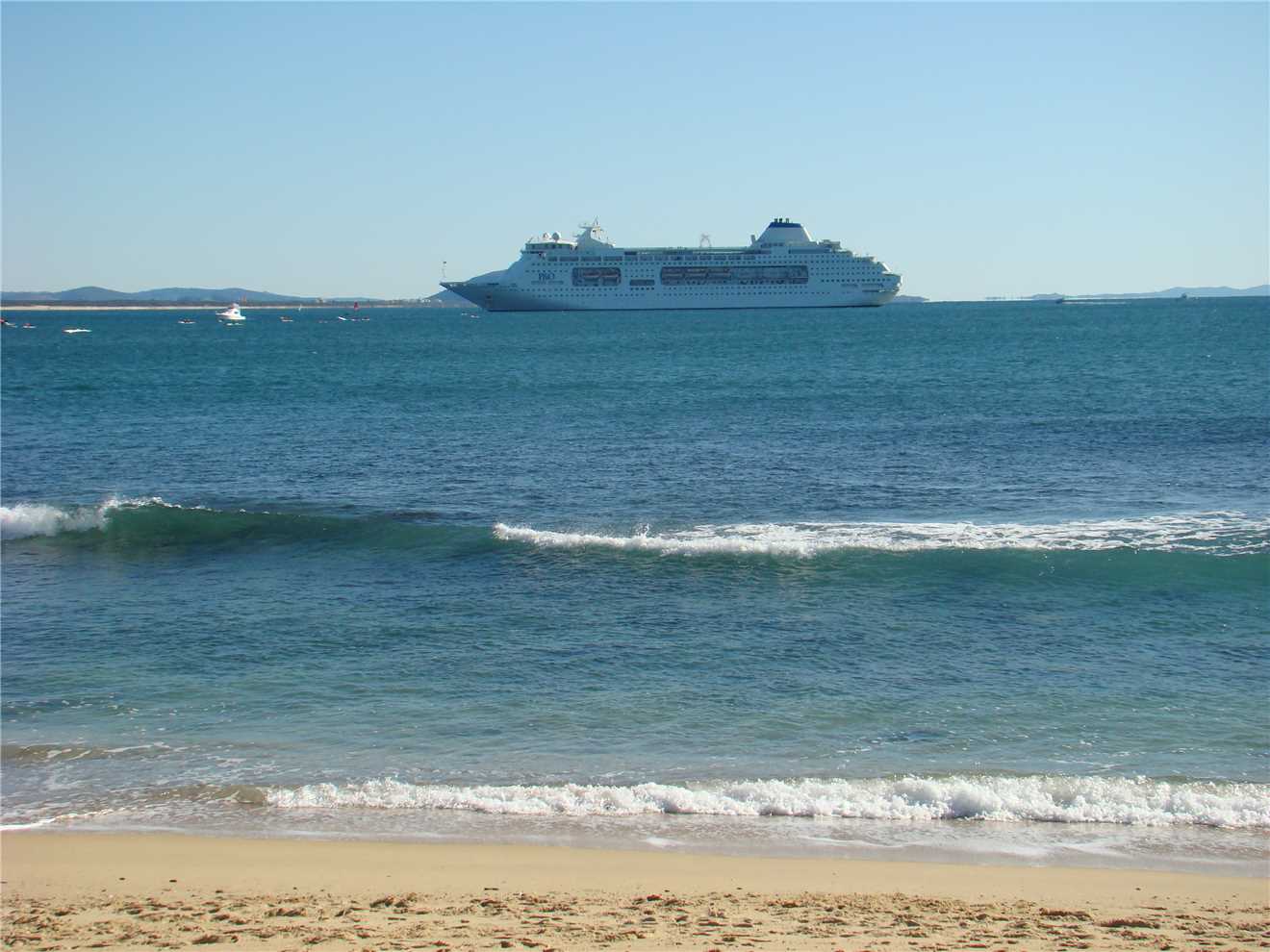 We woke up about 7:00am and got up. We had brekky and about 8:00am, I changed into 'cycleman' and did my now normal route of approx 47kms. I headed off to Point Cartwright Lighthouse, where I spotted a large boat anchored about a kilometer offshore, took some photos, rode down to the end of The Spit and took more photos, then rode back to Beach Drive about 7kms away, before turning around again and heading back to the Lighthouse and then down the hill to the Spit, where I managed to see the Tenders ferrying passengers. The various paddling clubs paddled out and around the boat, on the beach there was a surf meeting with heaps of colour. The Tenders picked up and dropped off their passengers at the Underwater World dock in Mooloolaba. The town expected about 1,800 passengers to descend on 'downtown' Mooloolaba, so Marg and I thought it was a GREAT idea to give Mooloolaba a BIG miss today.