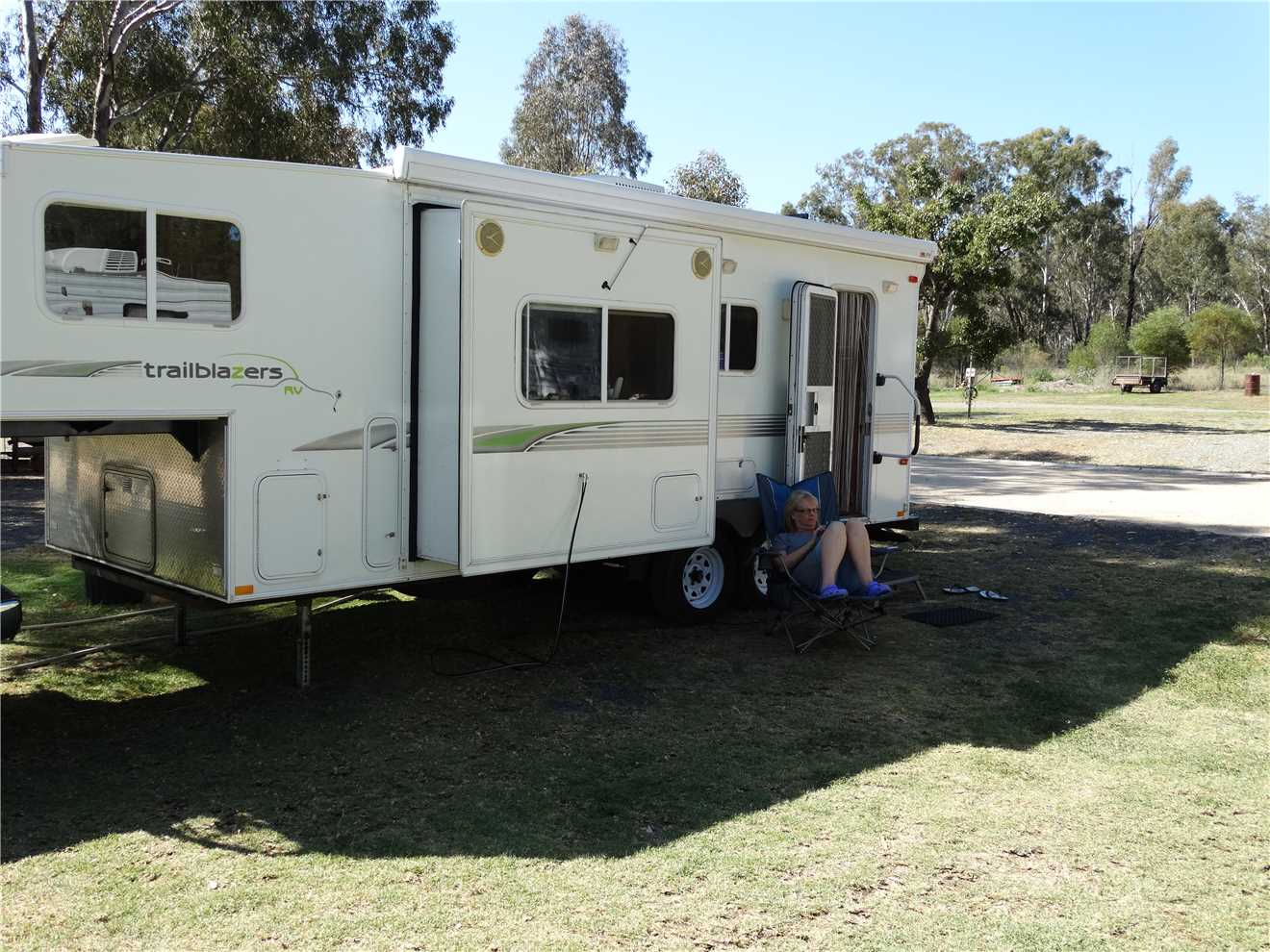 We turned onto the Newell Hwy and headed south to Peak Hill about 448kms away, another long day. Our first planned stop was at the Shell Roadhouse (8:35am) just south of Narrabri for a diesel top up, next stop was at Coonabrabran (10:04am) just near their Dump Point, last year, that's where we saw a tortoise/turtle in the river. Next stop was a fuel top up at the Caltex Roadhouse (11:28) just south of Gilgandra. We only had 113kms to Peak Hill. Along here we had 1 roadwork which stopped us for about a minute and one other stop for "blasting", it was blast time at the Tomingley Gold Mine about 20kms north of Peak Hill. The mine stops the Newell Hwy both ways while they blast. We just missed the actual blast but saw the dust. Got to Leighton's at 1:23pm, except leighton and Pauline are on a 10 week vacation, spending 10 days in the UK visiting family. Robyn and Dean are minding the park and doing a good job. Robyn said the scones will arrive between 4 and 4:30pm, I thanked her for carrying on Pauline's tradition. While waiting for the scones, we had a nanna nap.