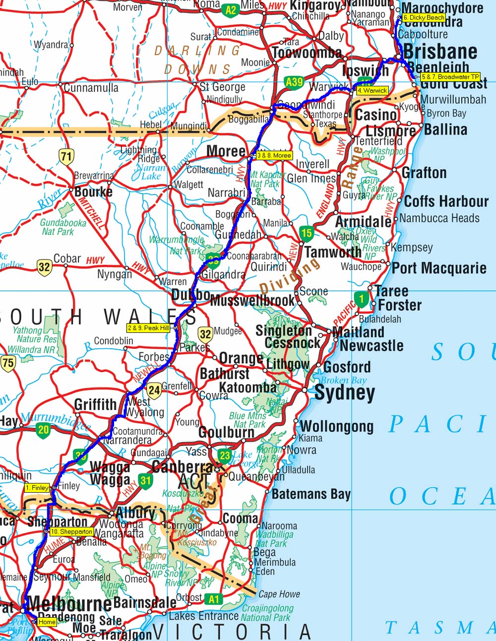 Melbourne to Southport, Qld - (Days 1 - 5) - 3rd to 7th May 2015.