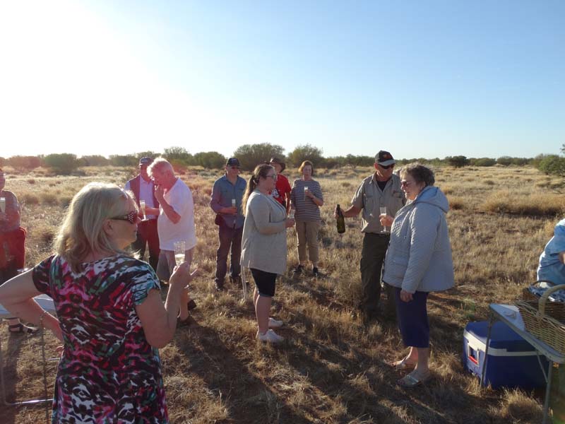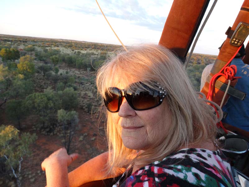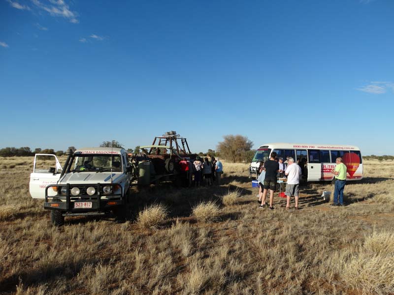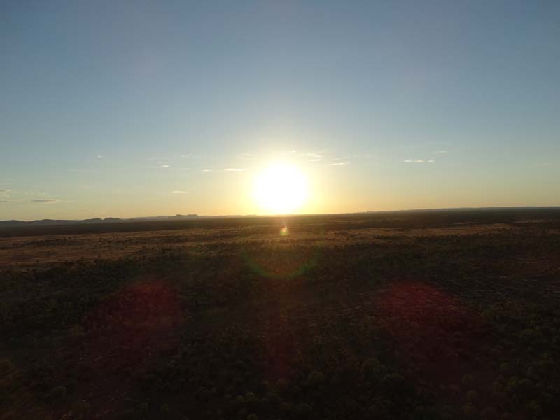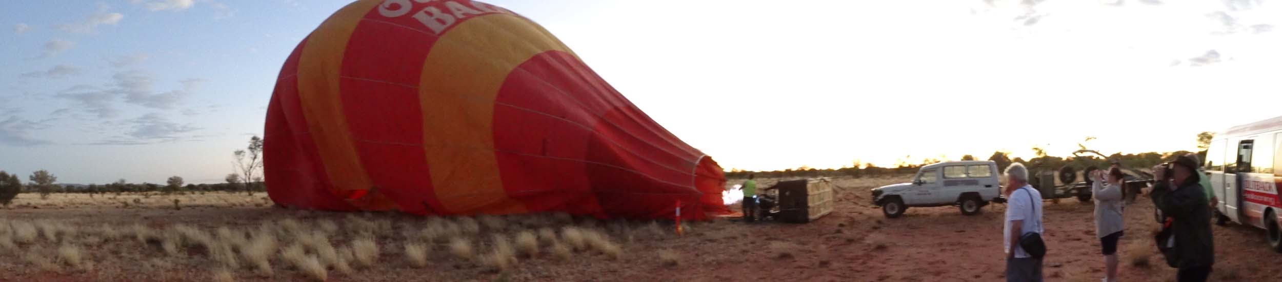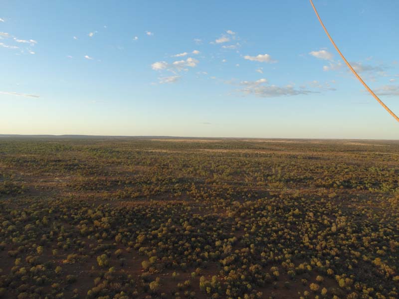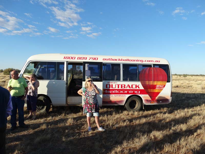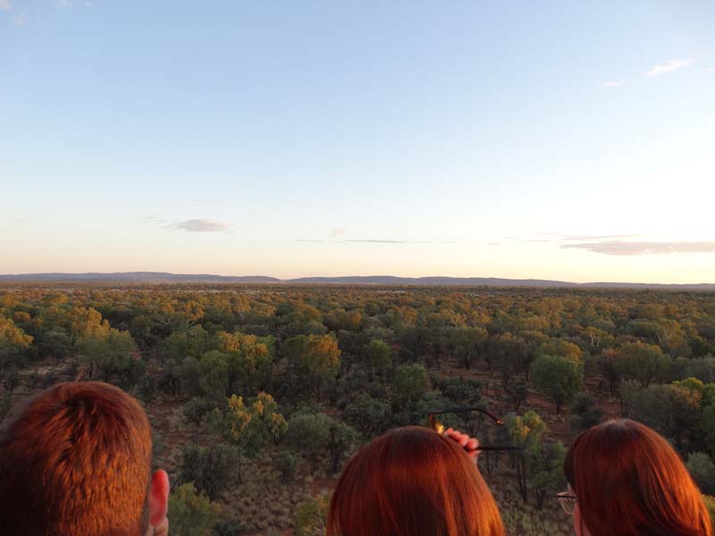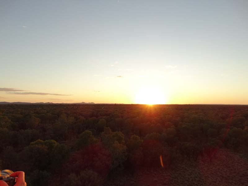 and the Alice Springs airport. We got to 300 feet cruising altitude and it was sensational. We spotted a few kangaroos. After 30 plus minutes, Jason picked an area to land and guided John and Duncan there. The landing was good, the basket bounced twice and then we were stopped and upright. Once we are stationary, Jason pulls a rope that opens the top and the balloon starts deflating. Then it is all hands on deck to fold and pack the balloon away.