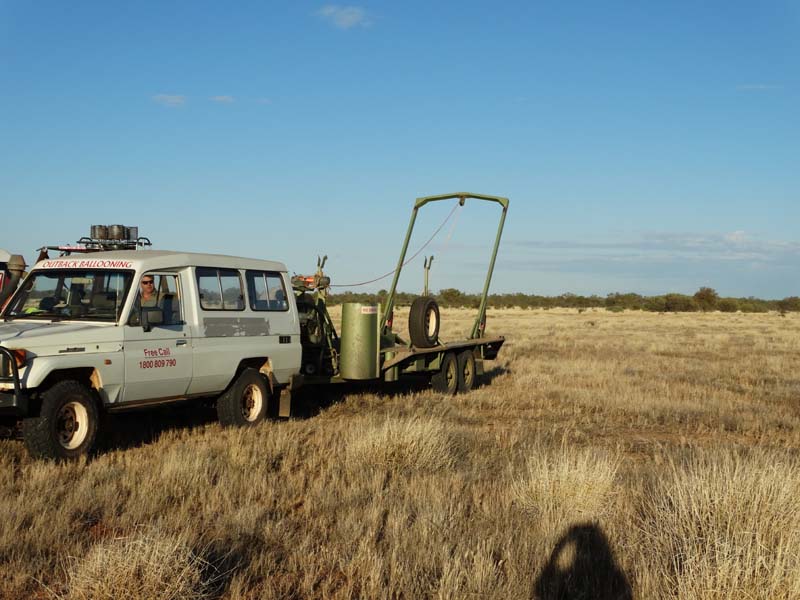 The height of the balloon is 130 feet. We went where the light breeze took us and Jason was in radio contact with John and Duncan was driving the ute and trailer