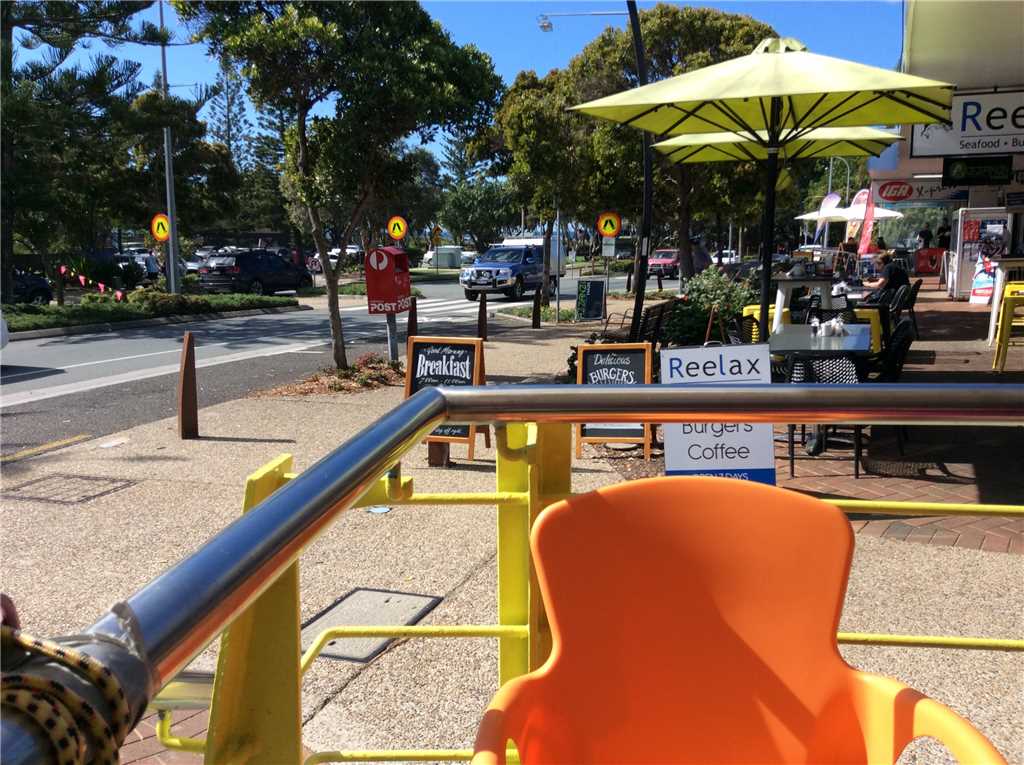 8:35am - Out the front of Robbie Mc Ewen's cafe at Miami Beach.