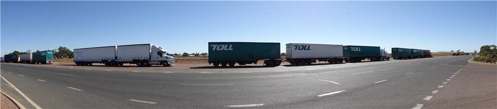 The trucks out the front of the Longreach Roadhouse, where we had coffee.