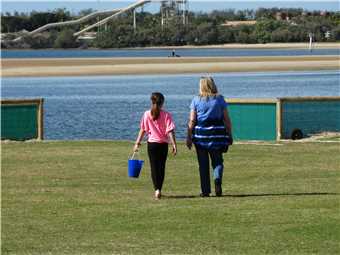 Mont and Marg heading to the beach.