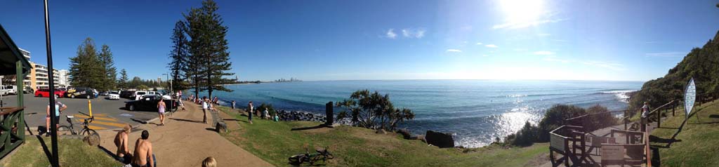 8:16am - At Burleigh Heads Bluff - Surfers everywhere.
