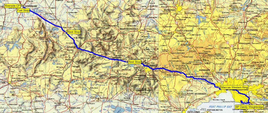 Our route from Melbourne to Horsham, Vic - 348 kms.