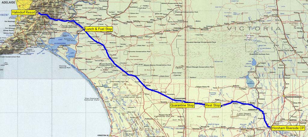 Our route from Horsham to Hahndorf, SA - 404 kms.