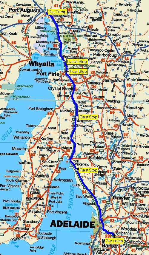 Our route from Hahndorf to Port Augusta, SA - 332 kms.
