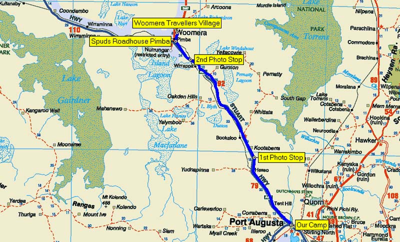Our route from Port Augusta to Woomera, SA - 178 kms.