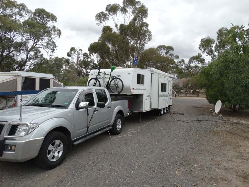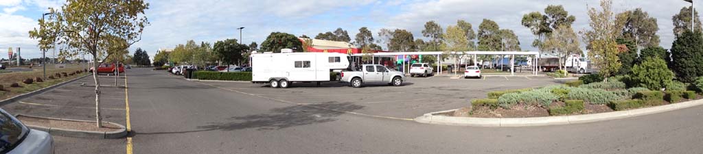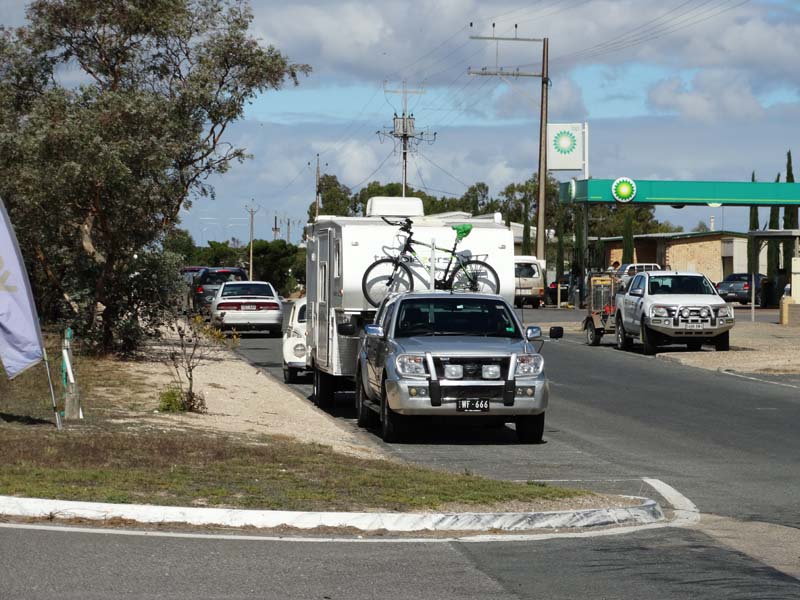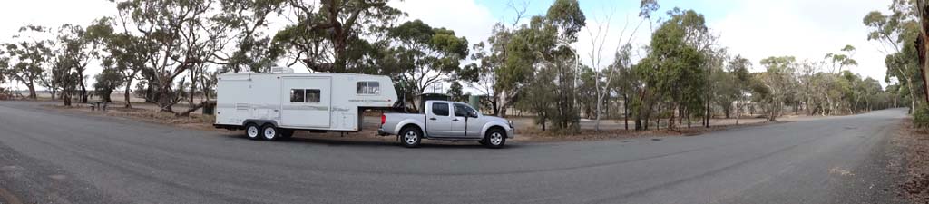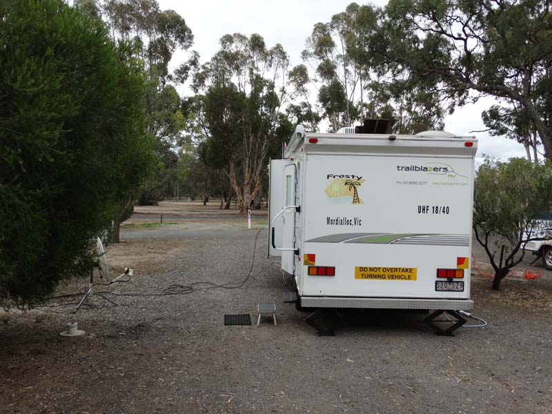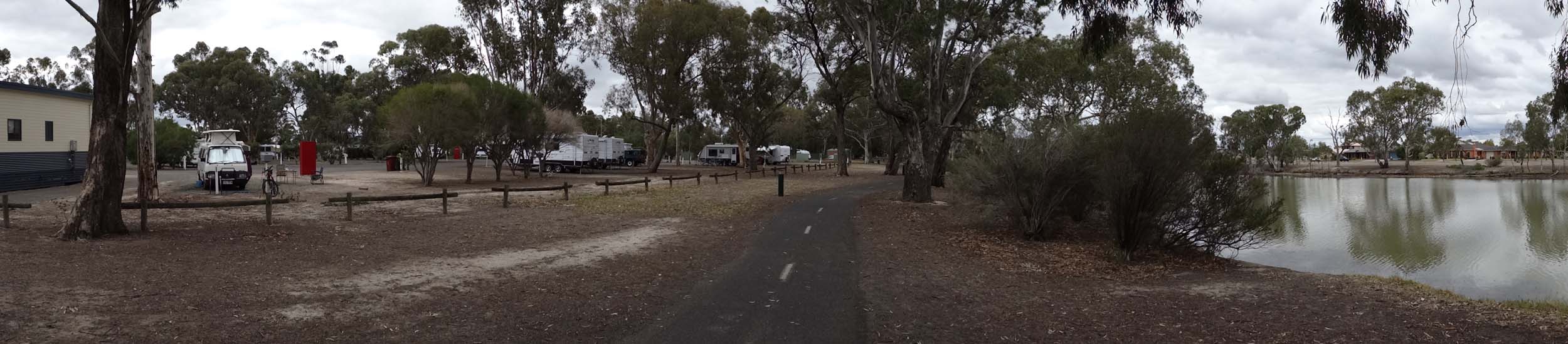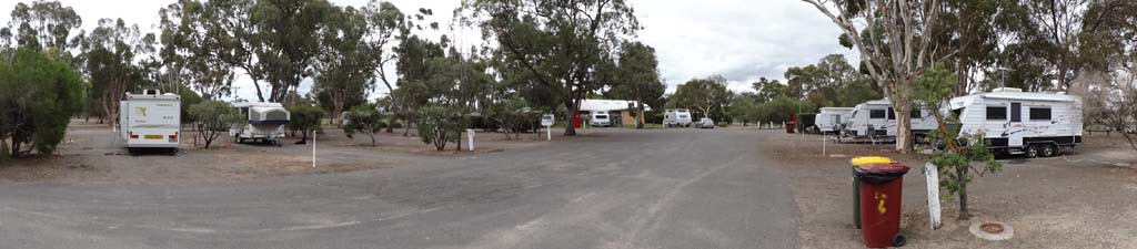Horsham we refuelled at the Caltex and then headed to the Horsham Riverside Caravan Park, arriving at 12:56pm and were alotted site 52, a drive thru.