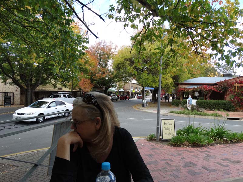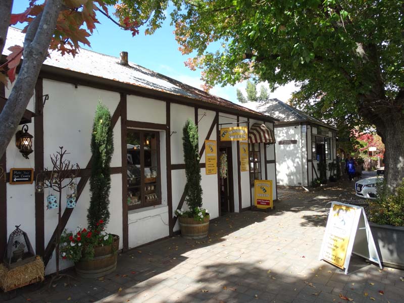 good old cow's milk. Into Melba's next door, well that saying "a kid in a candy store'. Well, that applied to Marg and me and $50 lighter, we left with a bag full of choccy bits. We will be sick. Headed off to Hahndorf's Main st.