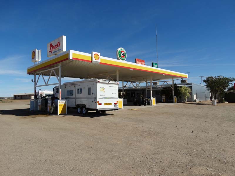 After a few kilometers, the views were absolutely stunning. (My photos definitely do not do justice to the scenery). On our right, we had the Flinders Ranges, but I couldn't take photos as it was looking into the morning sun, but on our left the scenery was just beautiful. Our 1st stop was for some scenery photos (9:24am), followed by another scenery stop (10:33am). As we are now in the Outback, I will be topping up with fuel at every roadhouse along the Stuart Hwy. At 10:55am, we pulled into Spud's Roadhouse and topped up, then drove the 7kms to Woomera Travellers Village, arriving at 11:13am.