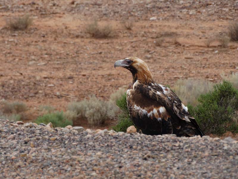 Shortly after leaving Woomera, the landscape was treeless and beautiful, as we drove along, I spotted Wedgie the Eagle on the edge of the road,