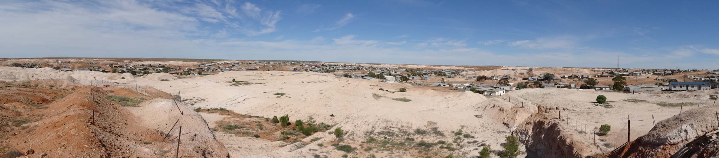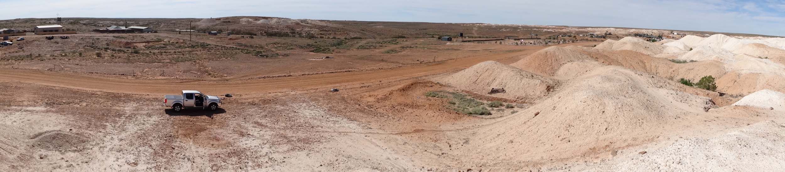 that I had to stop and capture it in a panoramic view. We arrived at Andamooka at 9:34am about 104kms. We drove through Town and decided that the