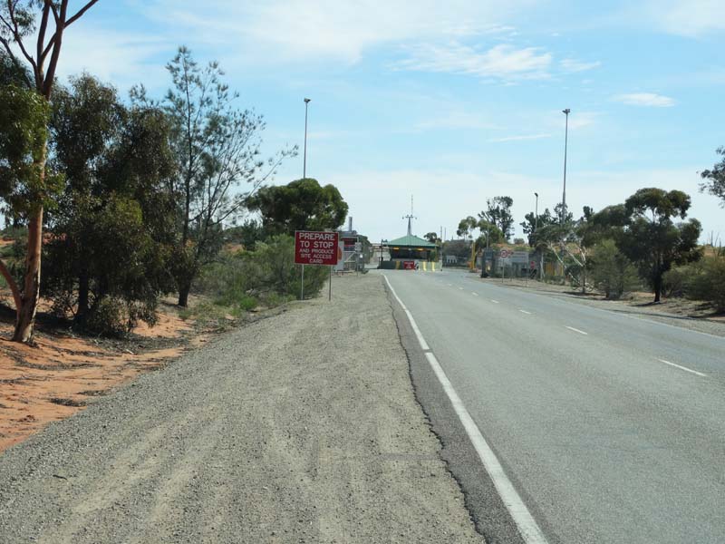 Left Andamooka and headed to the Olympic Dam mine and turned around in front of the security gate, before driving into Roxby Downs. We had lunch at a