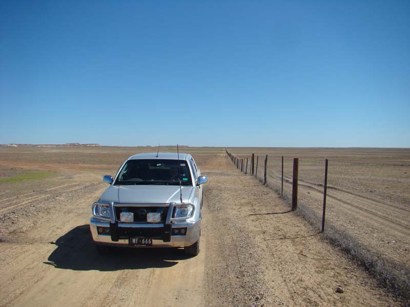 OK, after the Breakaways, we stopped at the salt and pepper rock formations, then continued on with stops until we came across the DINGO FENCE, or as
