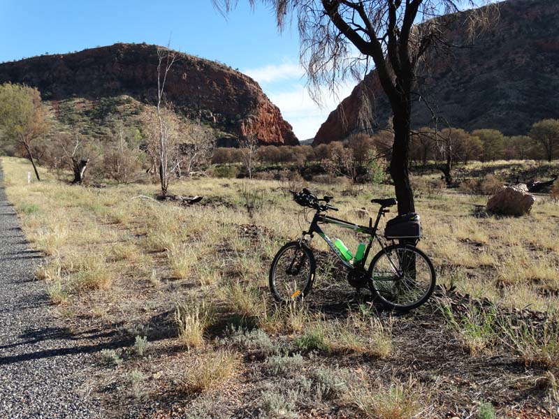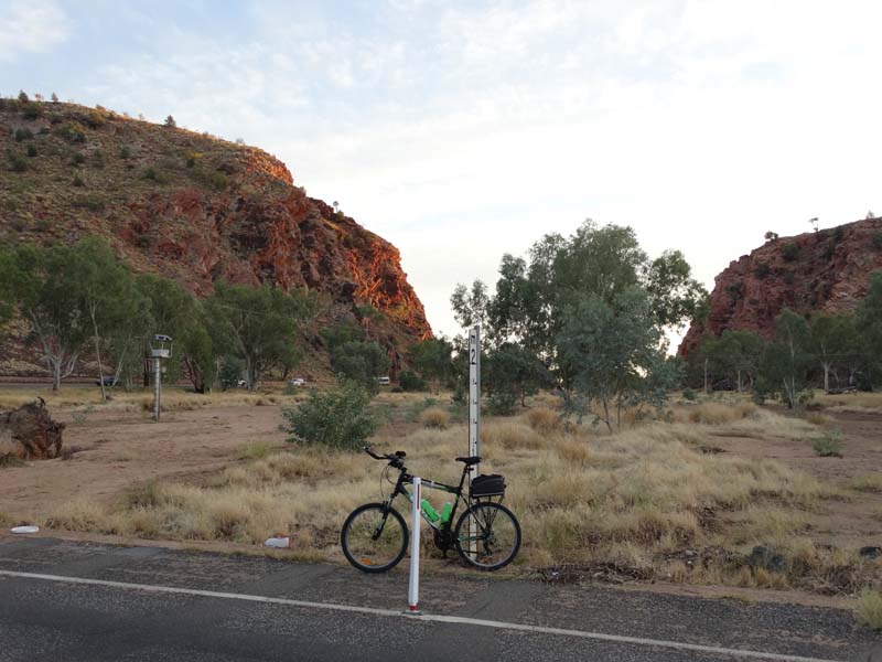 I slept well until 5am, pulled on my 1st blanket. I awoke about 6:30am and decided to ride out to Simpsons Gap via the bike path.