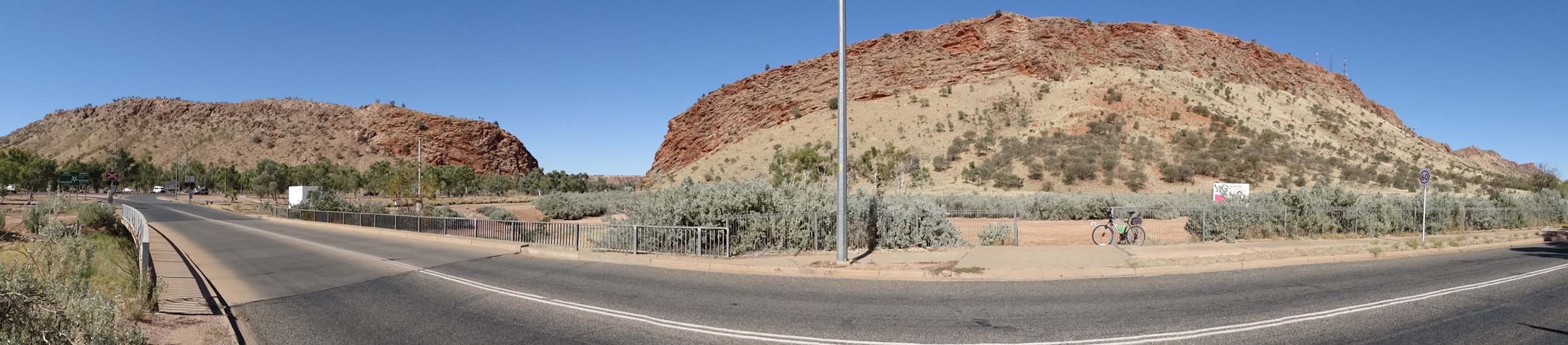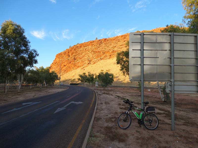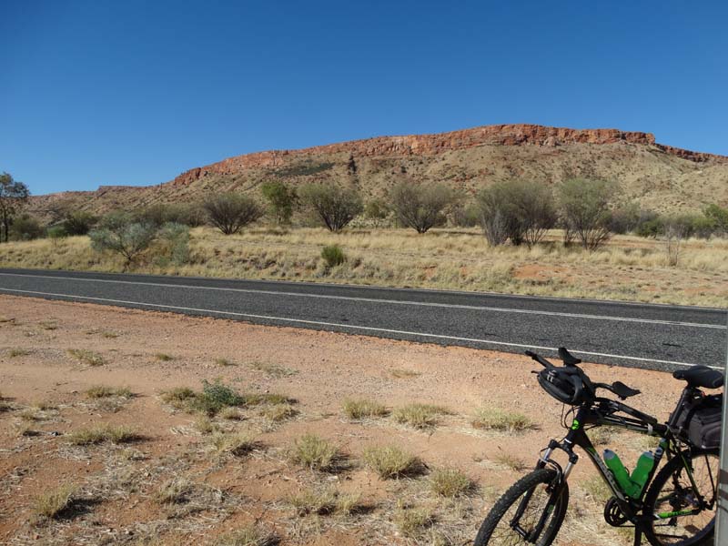 As I rode along Larapinta Drive, you had to ride on the white line on the edge and the few cars were doing 110kph, I was continuely looking behind me,